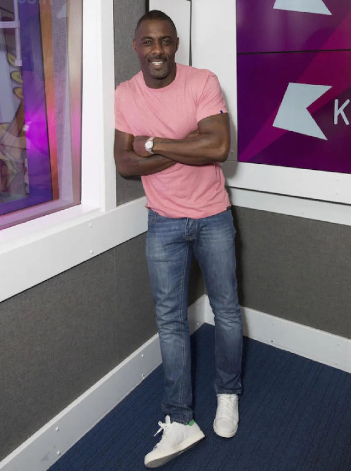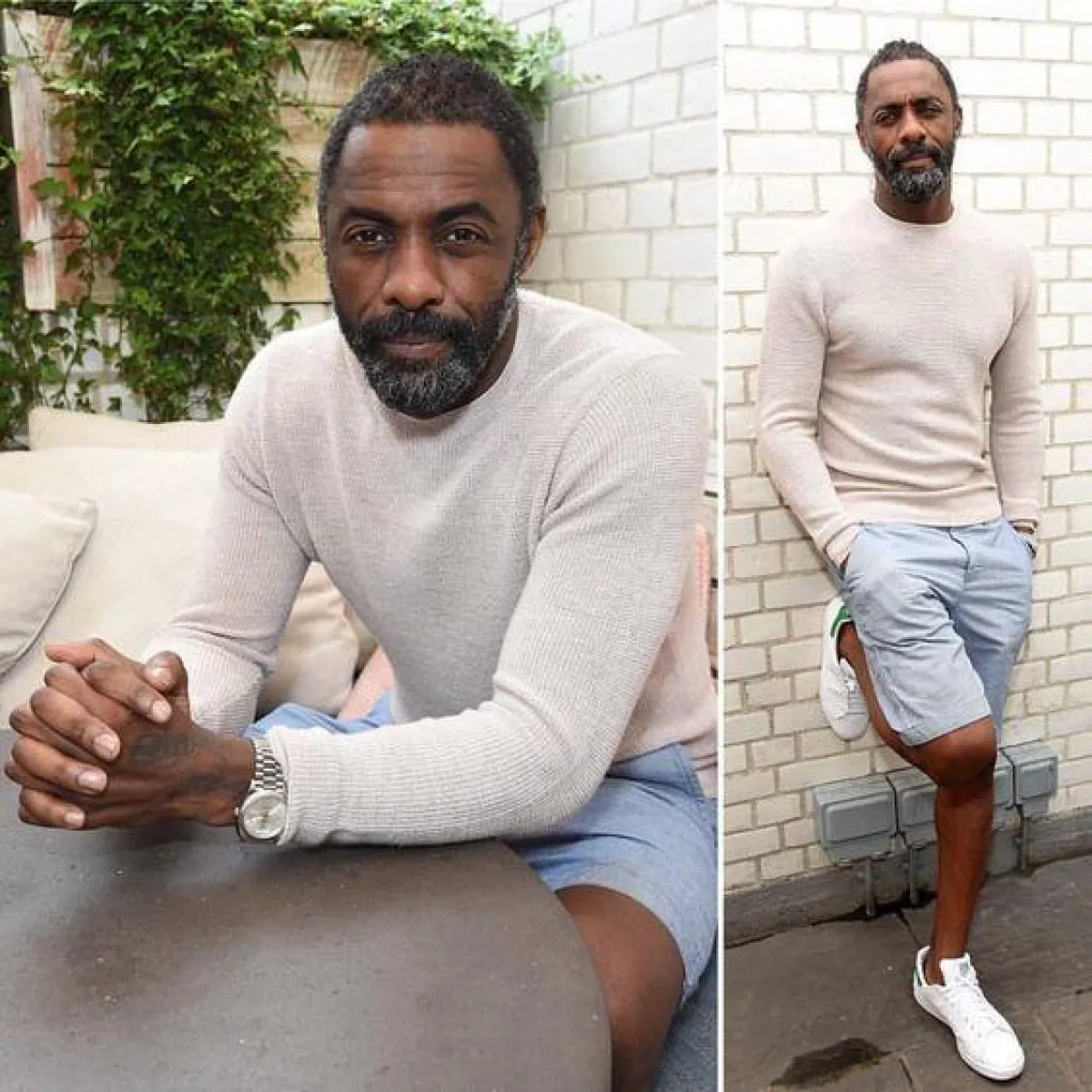 أعجبتنا إطلالة النجم العالمي Idriss Alba إدريس ألبا، بـ التيشرت البينك، مع الجينز العصري، والحذاء الرياضي الأبيض. أما إذا كانت وجهتكَ الشاطئ في العيد، فاخترنا لك الجينز الثلجي مع السويت شيرت الأوف وايت، والحذاء الرياضي الأبيض أيضًا.