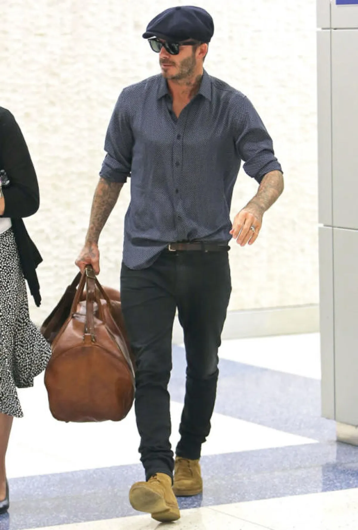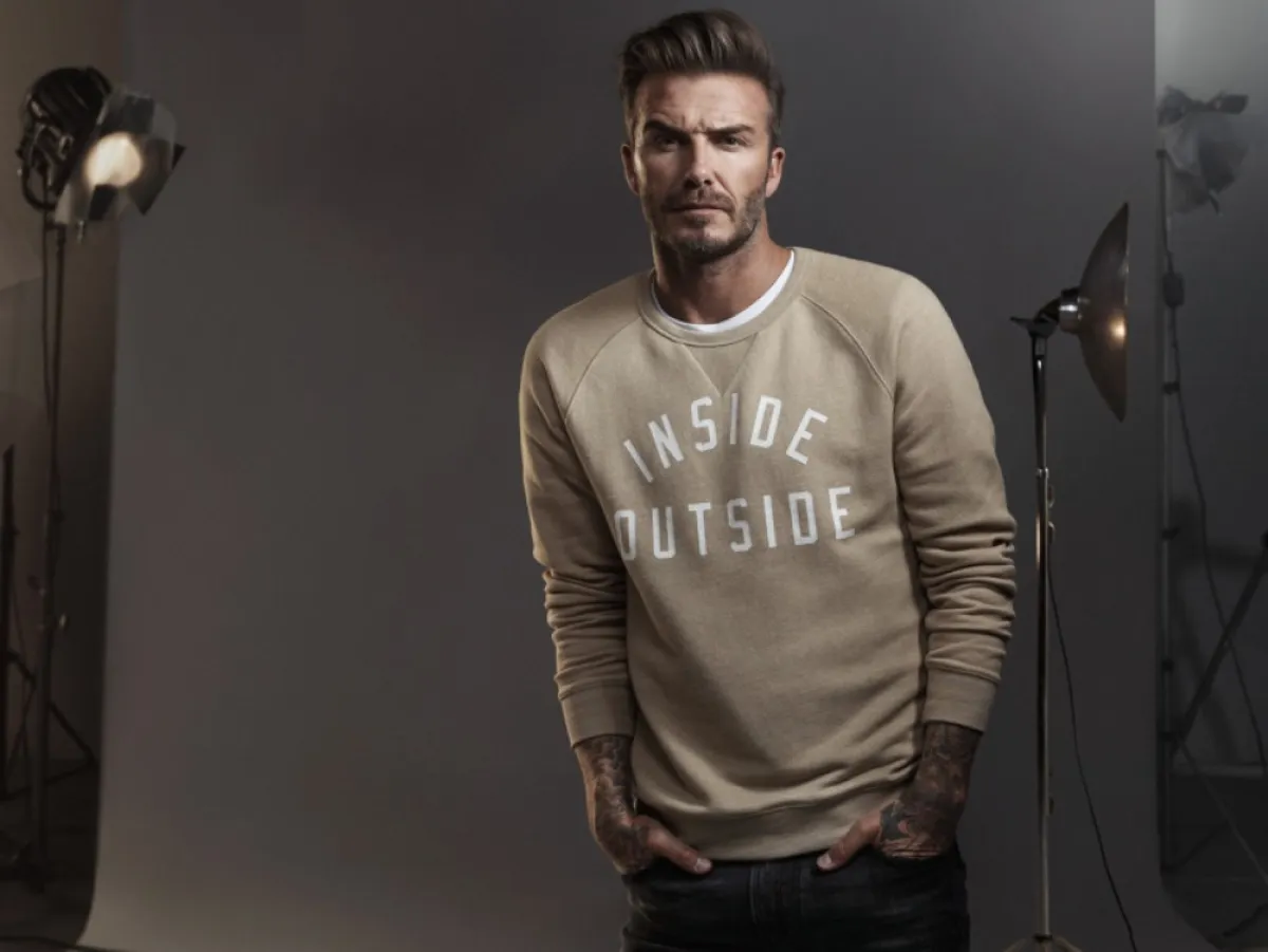 البنطلون الأبيض من القطع الرائجة في الموضة الرجالية، يمكن ارتداؤه على طريقة اللاعب الشهير David beckham ديفيد بيكهام، مع التيشرت ذي الياقة الكلاسيكية باللون الكحلي.