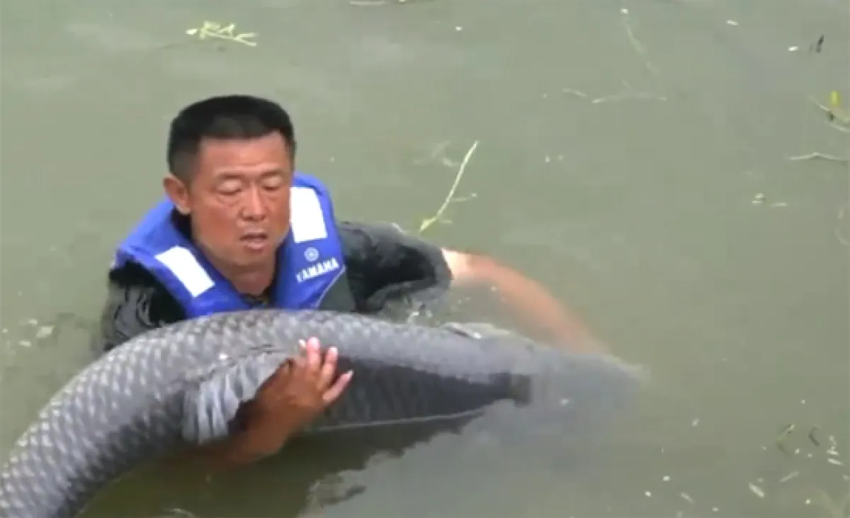 وأظهر مقطع فيديو متداول ،الصياد لي دامو وهو يشرح أمام الكاميرا أن السمكة يبلغ وزنها 75 كيلو غراماً، ويحاول رفعها بيديه من المياه ليبين مدى حجمها الضخم.