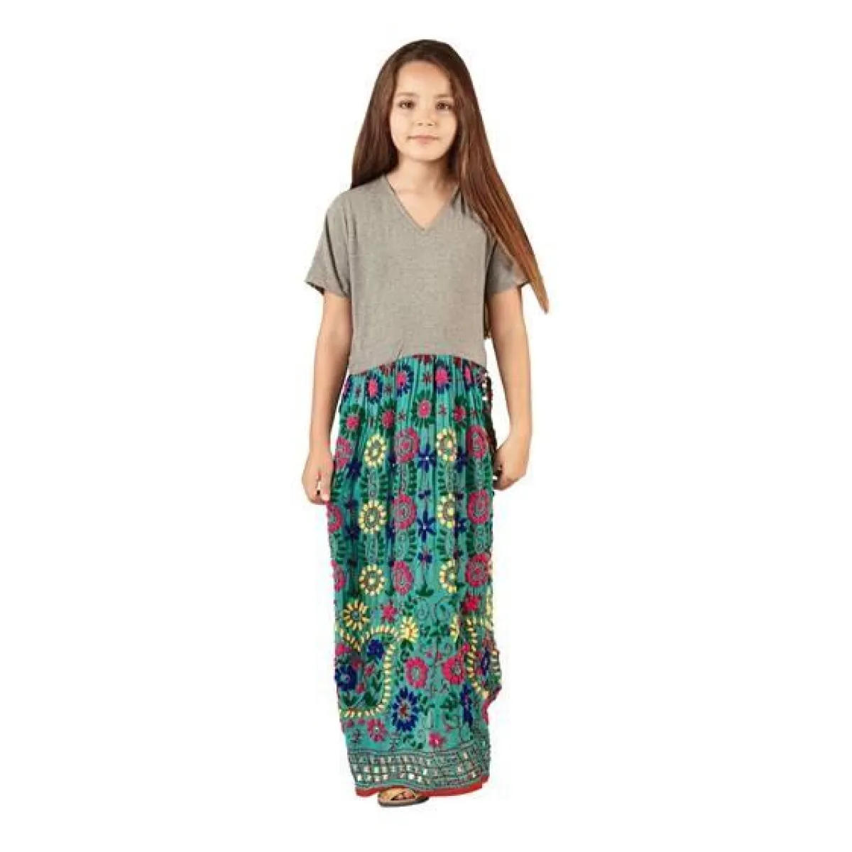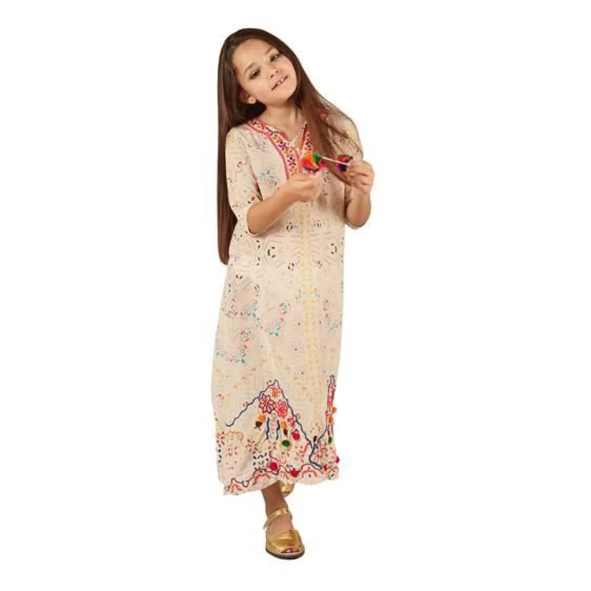 4 - فستان بناتي طويل مطبّع بالنقوشات