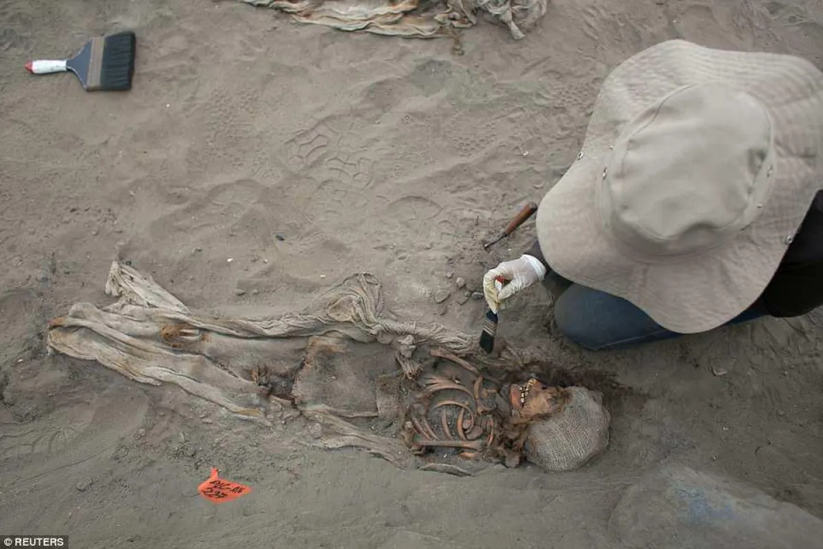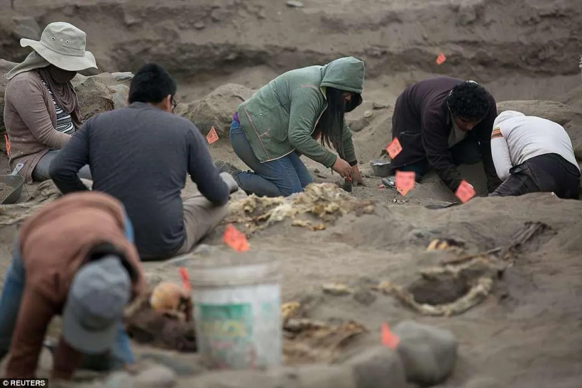 باكتشاف مهم للغاية رغم أنه غاية في البشاعة، عثر علماء الآثار على 56 هيكلاَ عظمياَ تعود جميعها لأطفال، يُعتقد بأنه تم تقديمهم كقرابين للآلهة من قبل حضارة الـ"تشيمو" القديمة في بيرو بأمريكا الجنوبية، حيث تم العثور عليهم إلى جانب ما يقارب من 30 جثة لحيوان الـ"لاما" الصغيرة، حيث يظن العلماء بأنه قد تم قتلهم كجزء من الطقوس الوثنية الغريبة لدرء خطر هطول الأمطار المدمرة والفيضانات الناجمة عن ظاهرة الـ"نينيو"، التي دمرت المنطقة منذ حوالي أكثر من 600 عام.