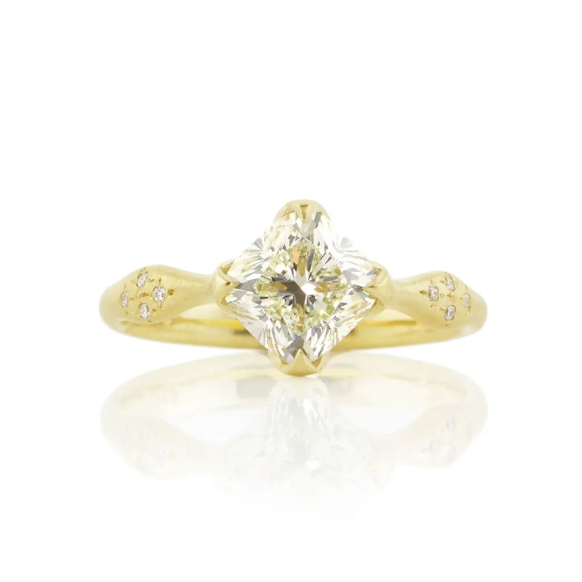 كما يمكنكِ كذلك عدم الاكتفاء بحجر ماسي واحد في المنتصف، بل اختيار ذلك التي صُمّم خصّيصًا لصاحبة الذوق المترف، بالخاتم المرصّع بالأحجار على كلا الجانبين، ل اطلالة أنيقة وفخمة.