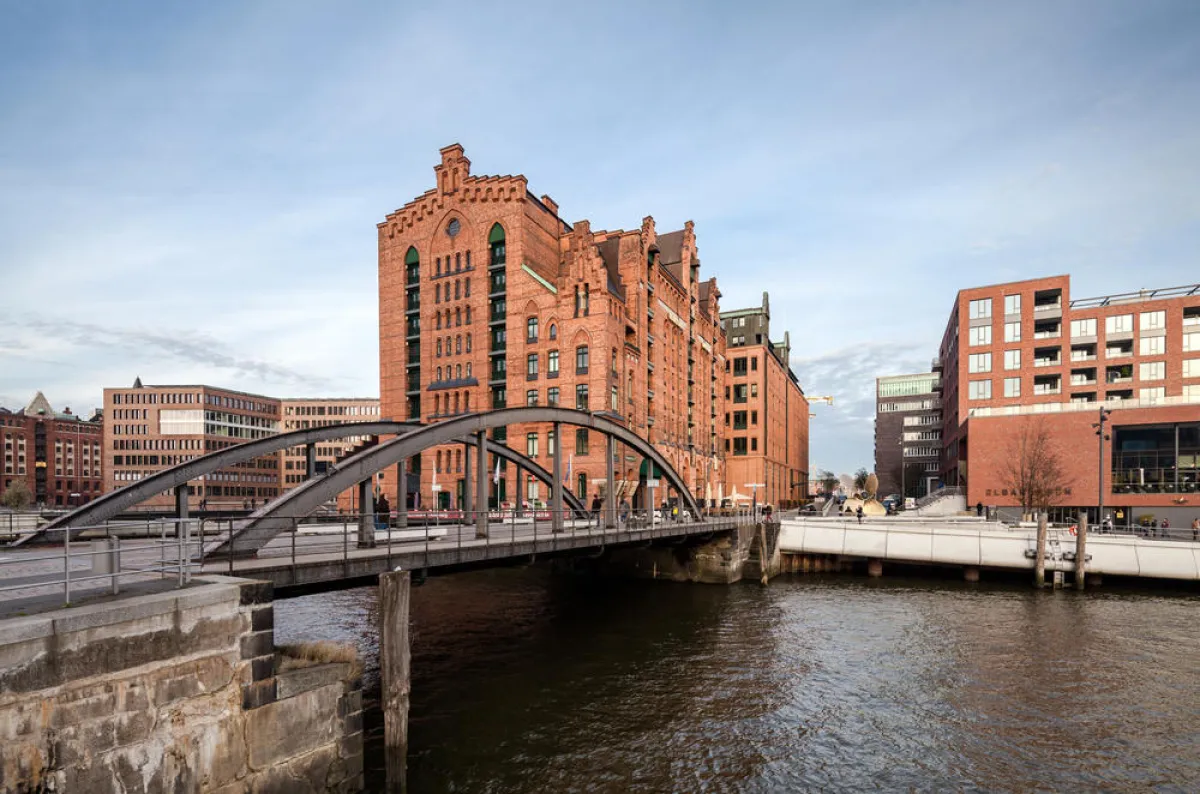 ميناء هامبورغ يُعرف باسم "بوَّابة المانيا". يقع مسار المشاة الجميل في منطقة "ورهاوس ديستركت" القديمة العائد تاريخها إلى القرن التاسع عشر. ومن بين المعالم الأخرى في الموقع: جسر Köhlbrandbrücke الممتدِّ على طول 3.9 كيلومترات في الميناء.