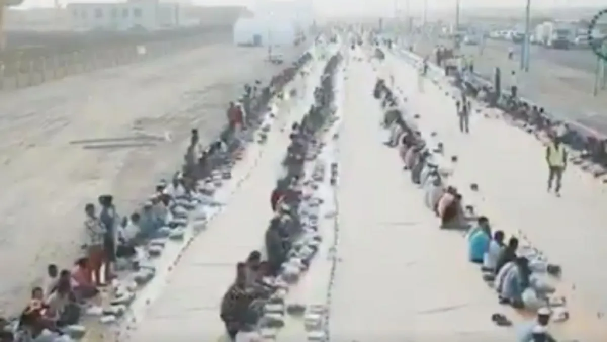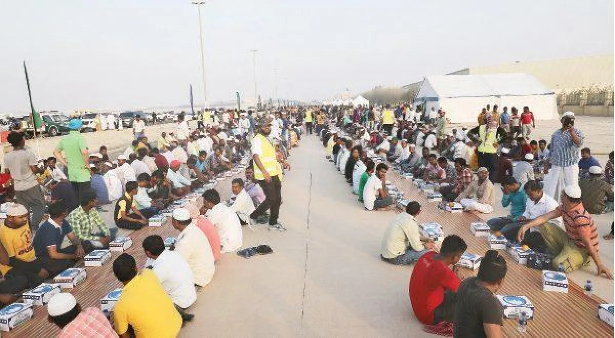 وجھزت الشرطة المائدة بطول 6 كیلومترات لـ12 ألفا و830 عاملاً صائماً في مدينة دبي الصناعیة في جبل علي.