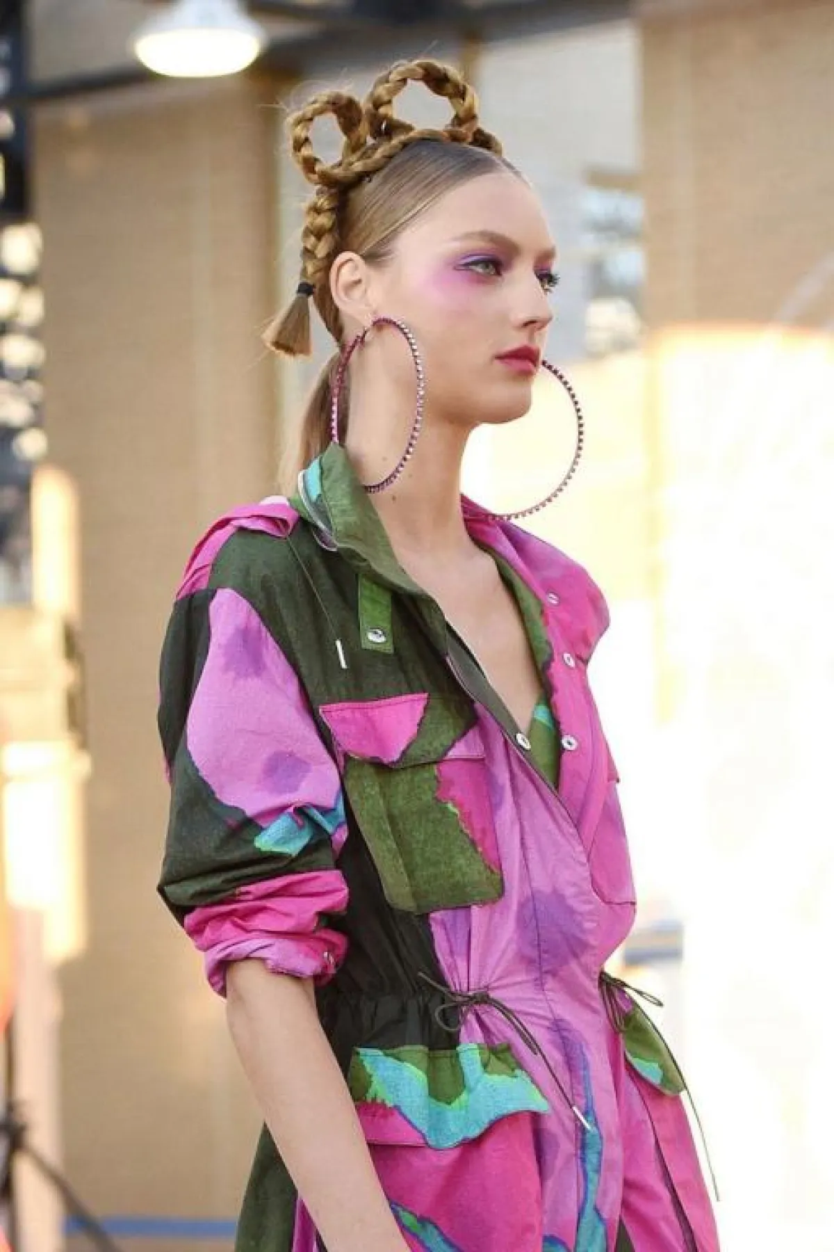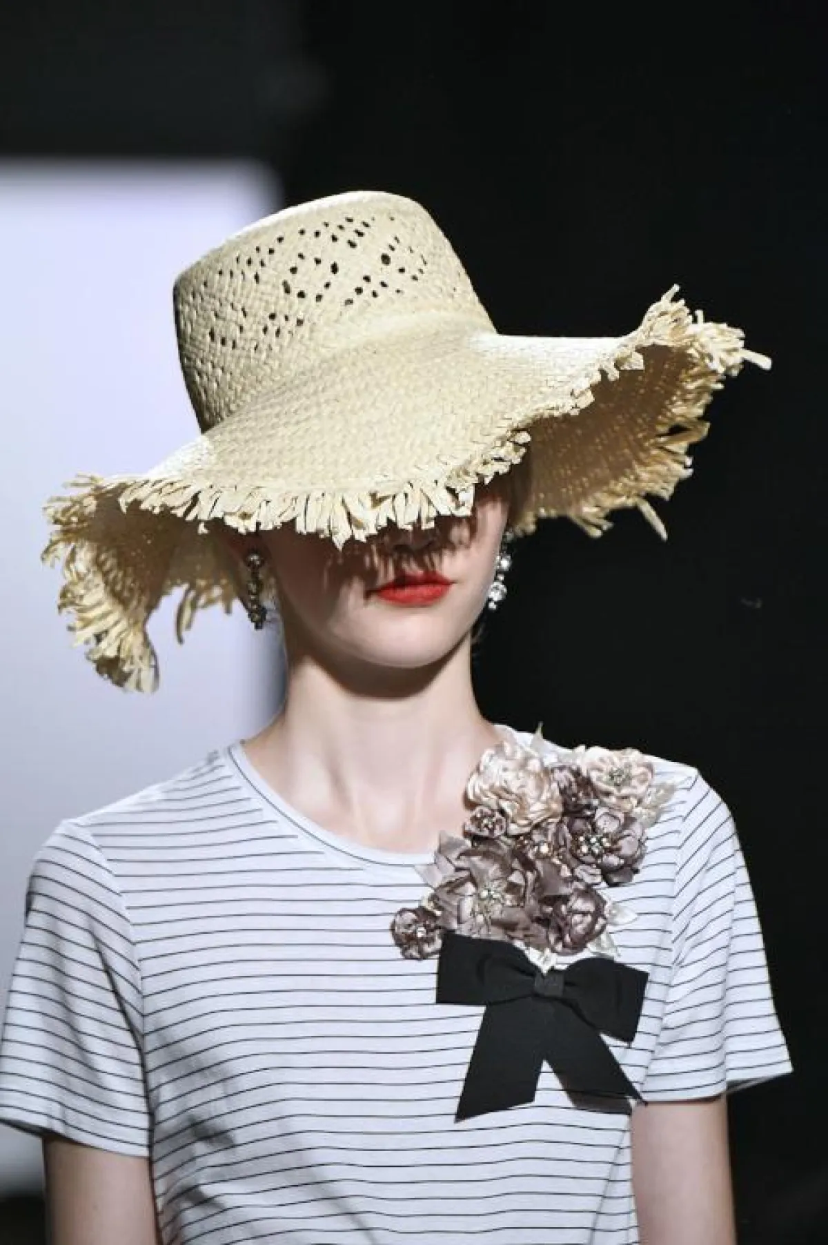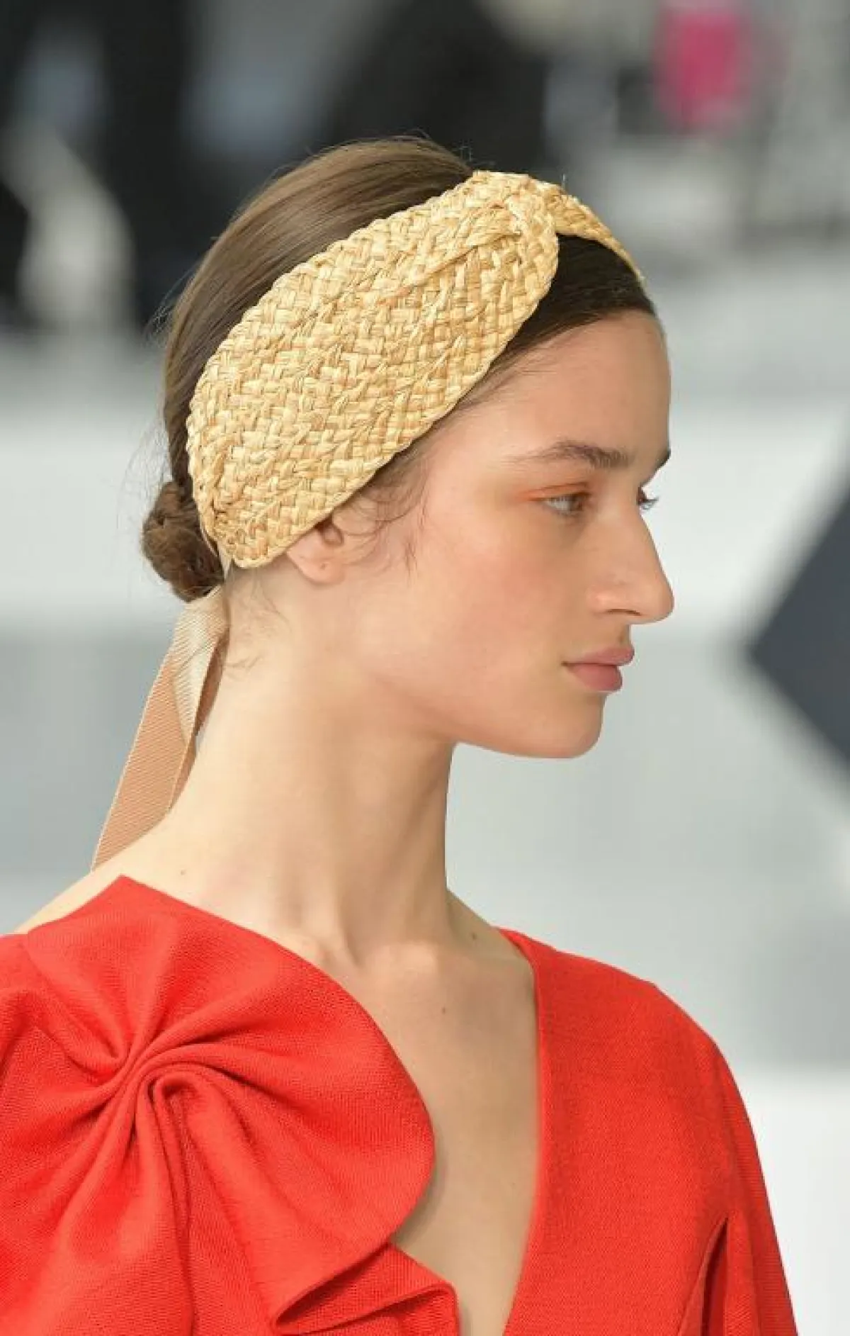 أعجبنا طوق الشعر المصنوع من الخوص العصري الجديد والذي يناسب أكثر الفساتين الصيفية الواسعة، وأجواء الشاطئ، مع الحقيبة والحذاء الخوص، مثل هذا التصميم من Delpozo من ديلبوزو.