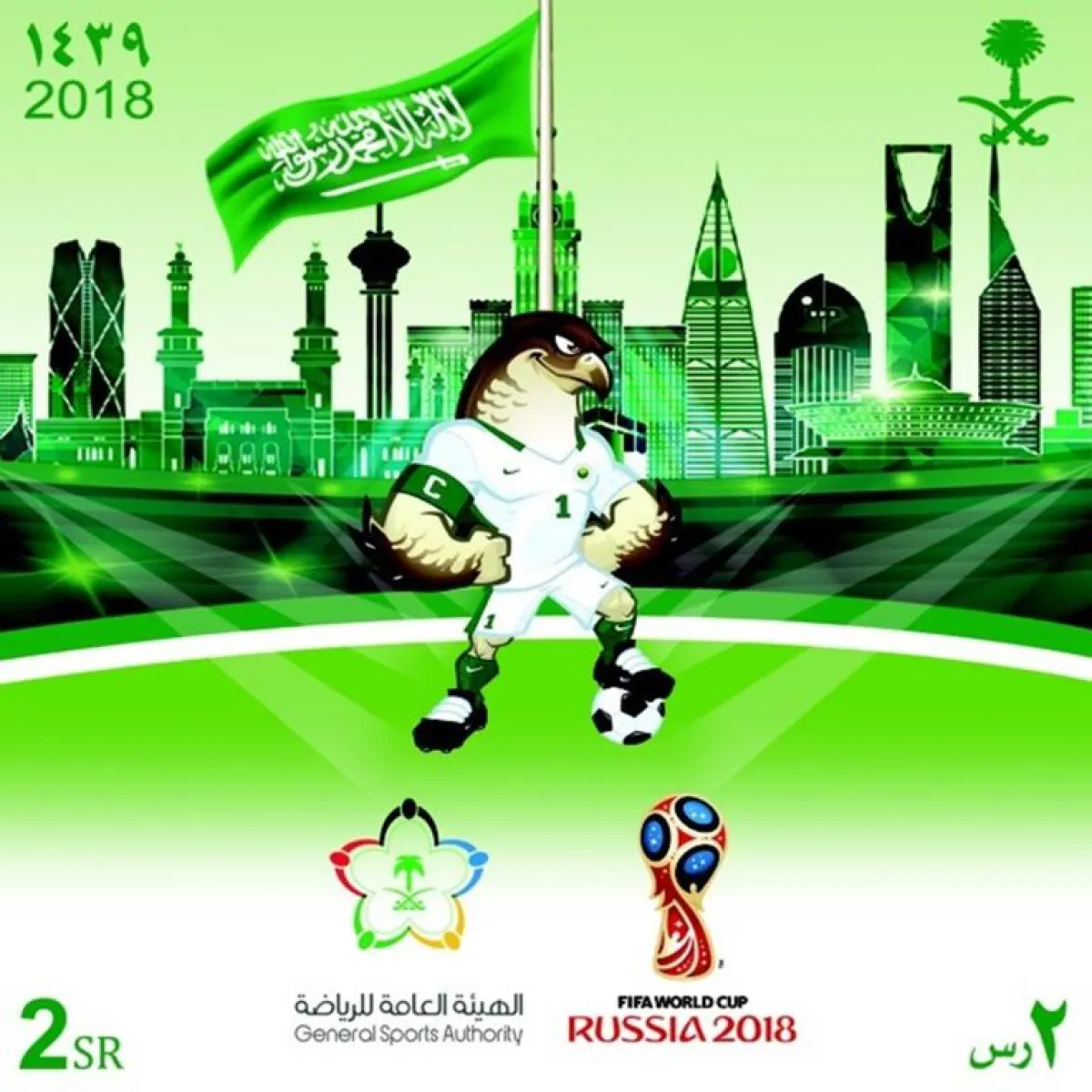 وحمل الطابع تميمة المنتخب التي تمثلت في صورة صقر على هيئة لاعب كرة قدم سعودي، إلى جانب شعار الهيئة العامة للرياضة وصورة لكأس العالم، ومكتوب عليه “معاك يالأخضر”.