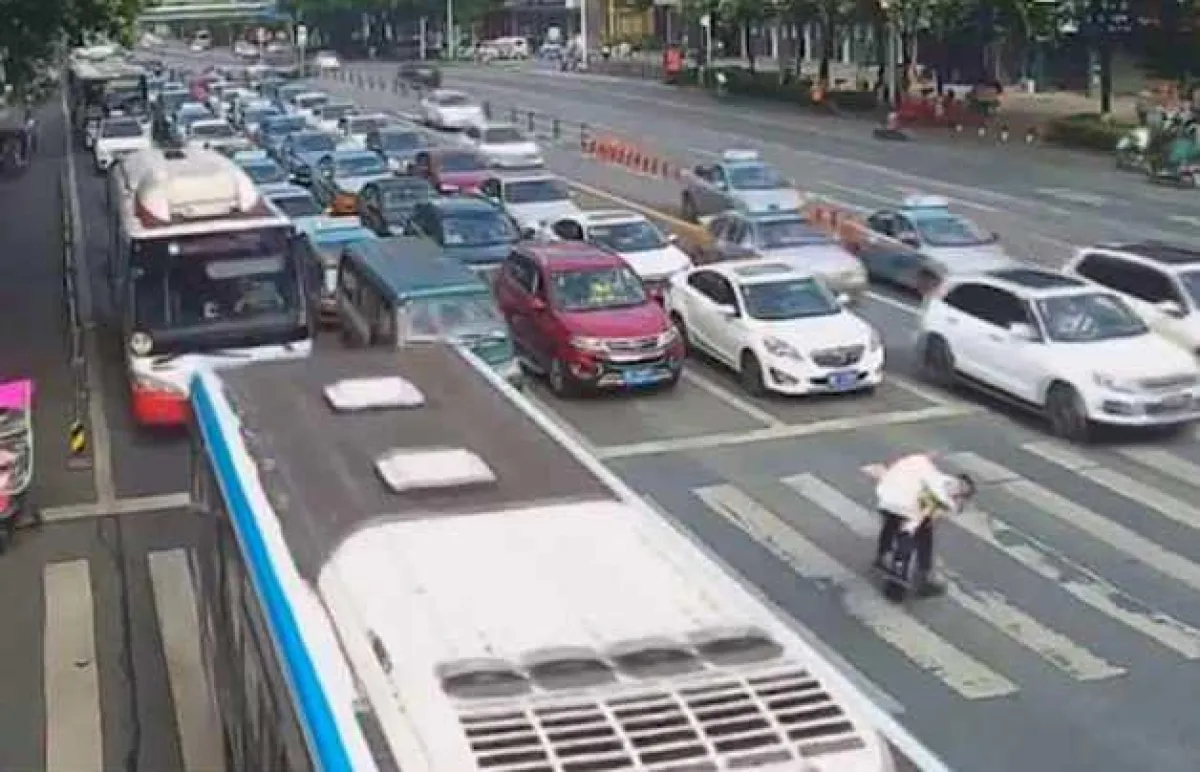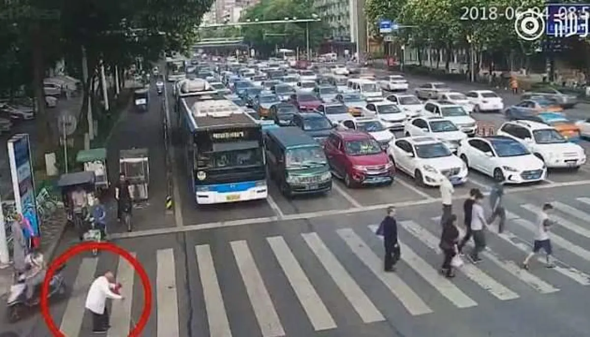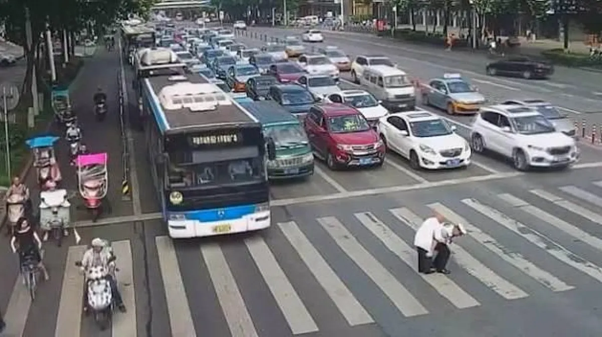 تم التقاط المشهد بكاميرا المراقبة عند التقاطع قرب ممر "سانهوي" في "ميانيانغ" بمقاطعة "سيتشوان"؛ حيث كان يتحرك الرجل العجوز ببطء شديد بحيث تحولت أضواء عبور المشاة إلى اللون الأحمر قبل أن يتمكن من الوصول إلى الجانب الآخر من الطريق، ولحسن الحظ، انتظر معظم السائقين خلف عجلة القيادة بصبر حتى ينتهي الرجل من عبور التقاطع المزدحم.