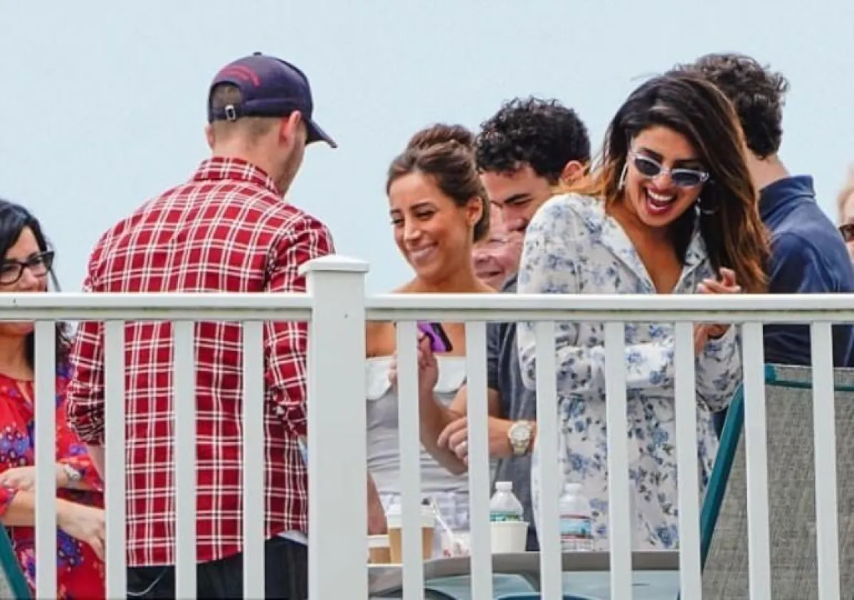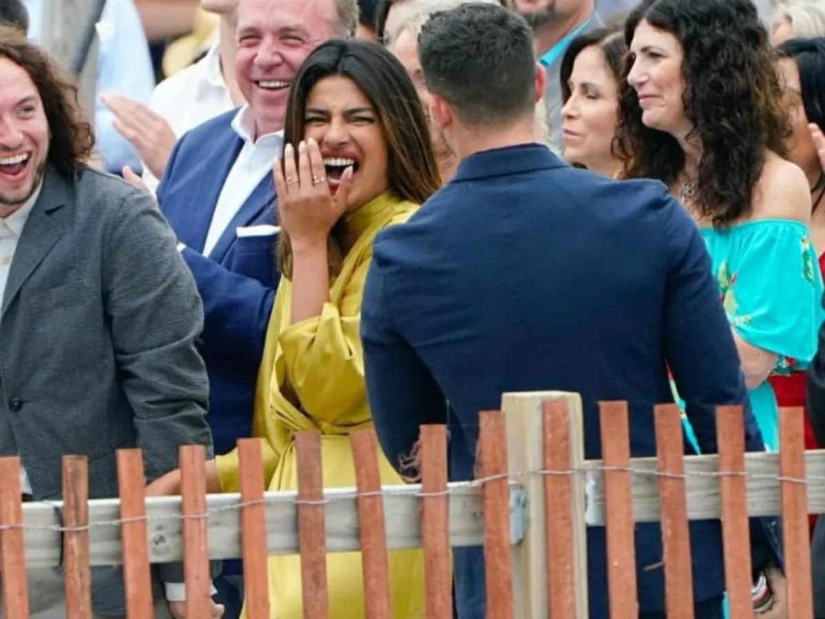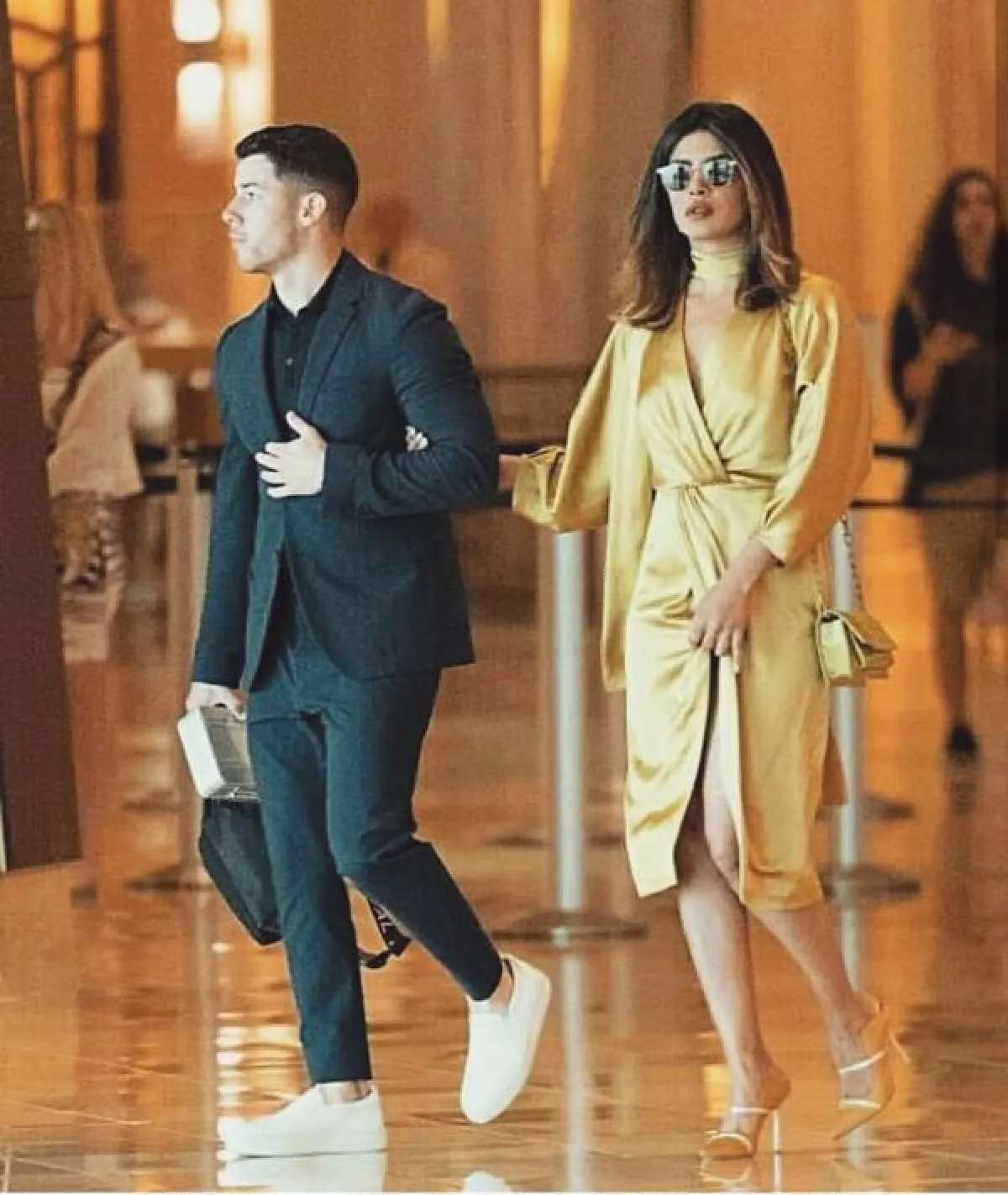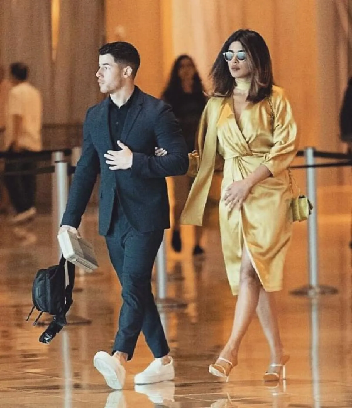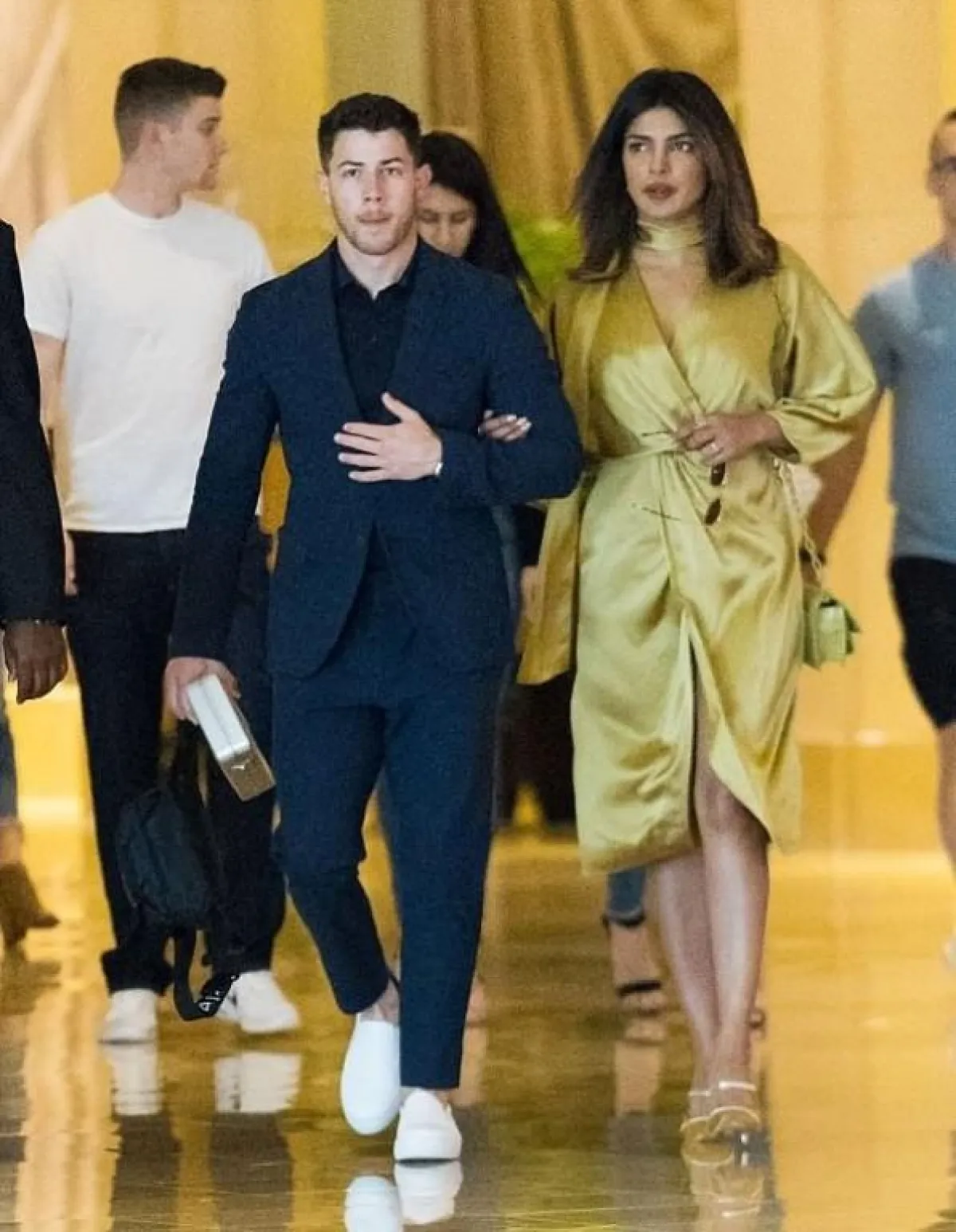 وبدت بريانكا البالغة من العمر 35 عامًا بكامل جمالها وتألقها في حفل الزفاف، حيث لفتت الأنظار إليها بسبب اطلالاتها الذهبية الناعمة التصميم، متأبطة ذراع حبيبها الجديد في هذه المناسبة العائلية، وقد بدا الثنائي يشبه إلى حد كبير زوجين في شهر العسل.