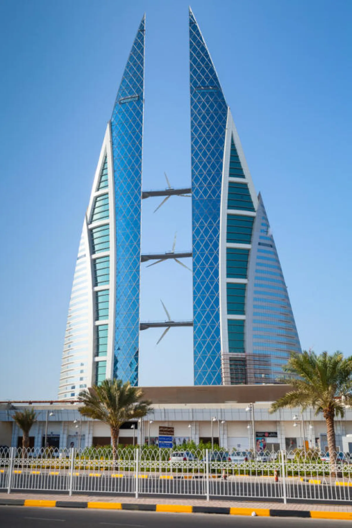 يرتفع هذا المركز لـ240 مترًا فوق سطح البحر، وهو عبارة عن برجين توأمين متَّصلين ببعضهما من خلال جسور معلَّقة في السماء. وقد فاز مركز البحرين التجاري العالمي بجائزتين مرموقتين كأفضل تصميم معماري.
