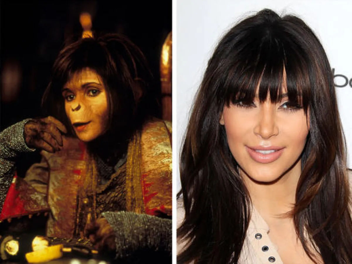 وإن كان البعض يتعرّض للإحراج عندما يُلاحق على أنّه نجم آخر، فإنّ بعضاً آخر قد شبّهه الإعلام بشخصيّات خياليّة من الأفلام، كما حدث مع نجمة المجتمع Kim Kardashian التي تمّ تشبيهها بـ "Ari" من فيلم كوكب القرود. kim التي أعلنت يوم أمس الإثنين أنها تتوقع طفلة ، هي لا تشبه القردة برأينا، إنّما بعض المواقع الأمريكية شبهتها بذلك. تابعوا المزيد من الصور التي تدل على تشابه النجوم في ما بينهم.