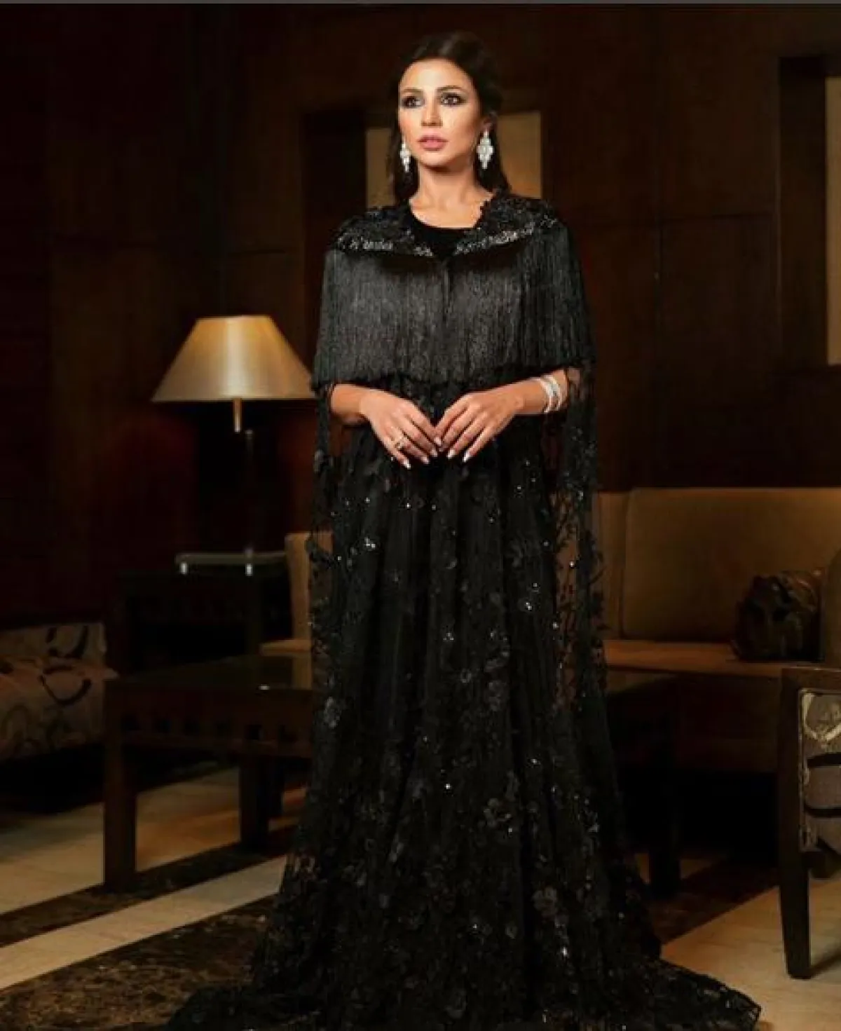 مهيرة عيد العزيز اختارت الأسود على اطلالة شرقية في جلابية ذات تصميم فاخر، وبدت غاية في الأناقة والنعومة.
