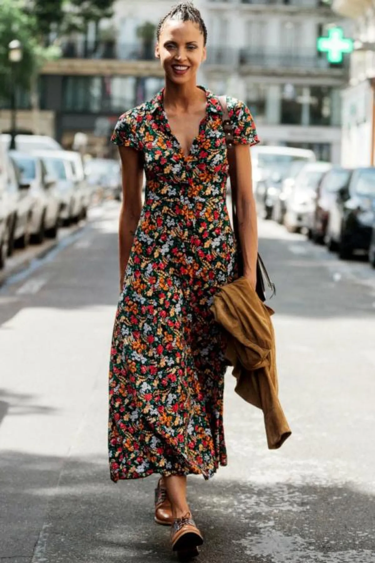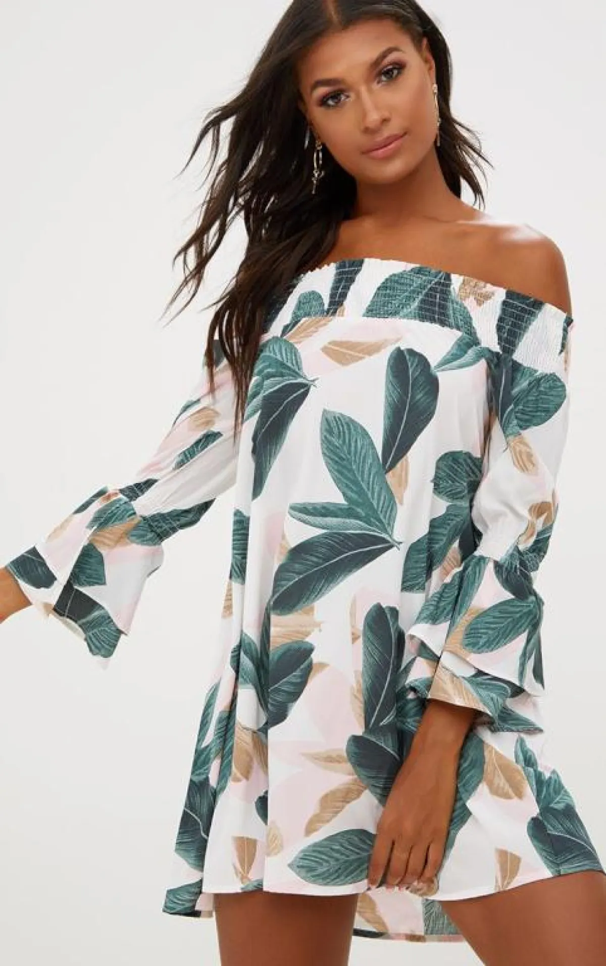 اخترنا لكِ هذا الفستان بخامة القطن الناعمة مع التشجيرات لفروع الأشجار، بالأكتاف المنسدلة، مع الكرانيش على الأكمام الطويلة، ويمكنكِ تنسيقه مع صندل مفتوح باللون الأبيض أو البيج.