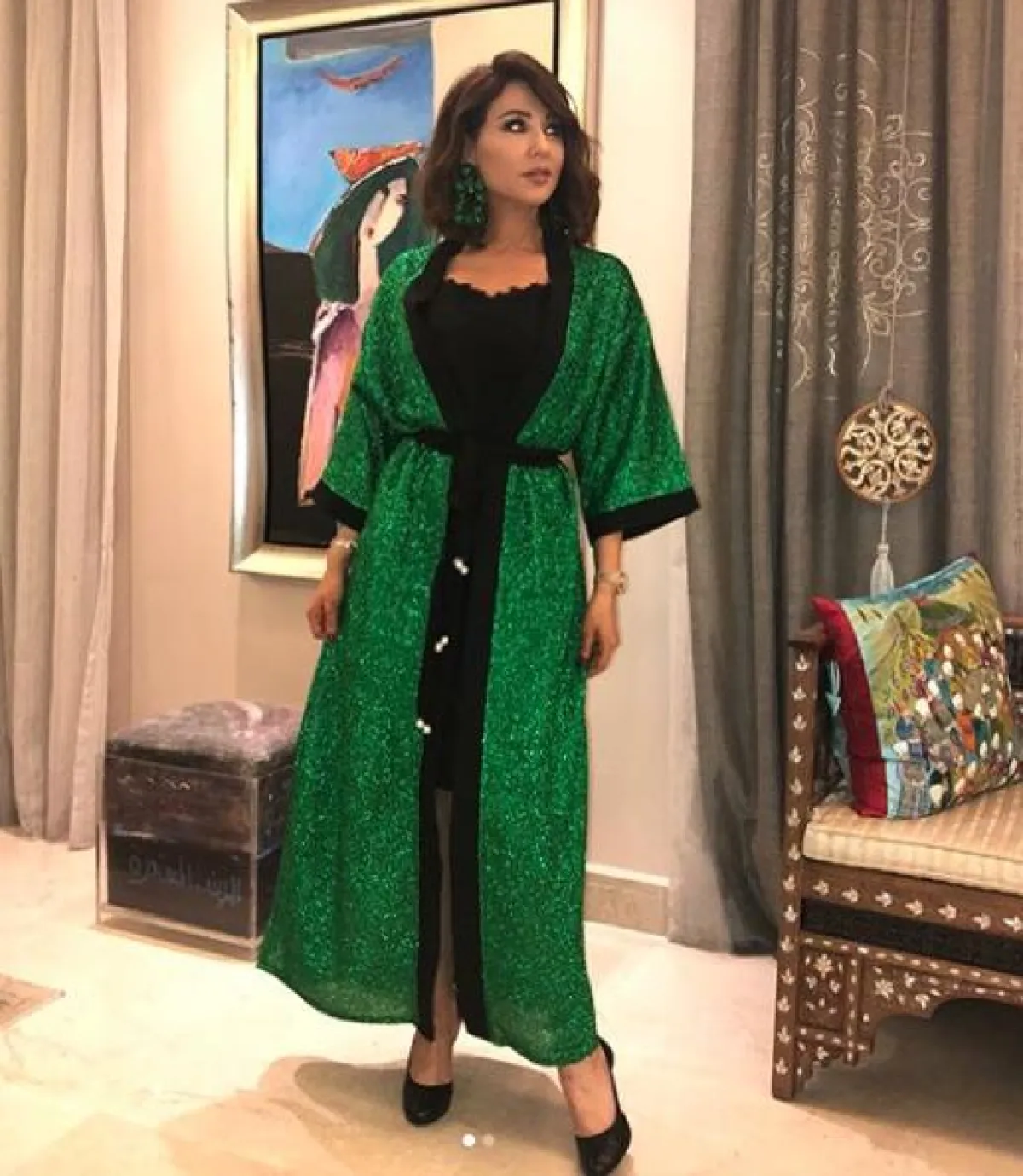 نسرين طافش فضلت الاحتفال في عيد الفطر في اطلالة مبتكرة في الزي الجزائري التقليدي، وقد اختارت مع اللوك حذاء كعب عالي باللون الذهبي.
