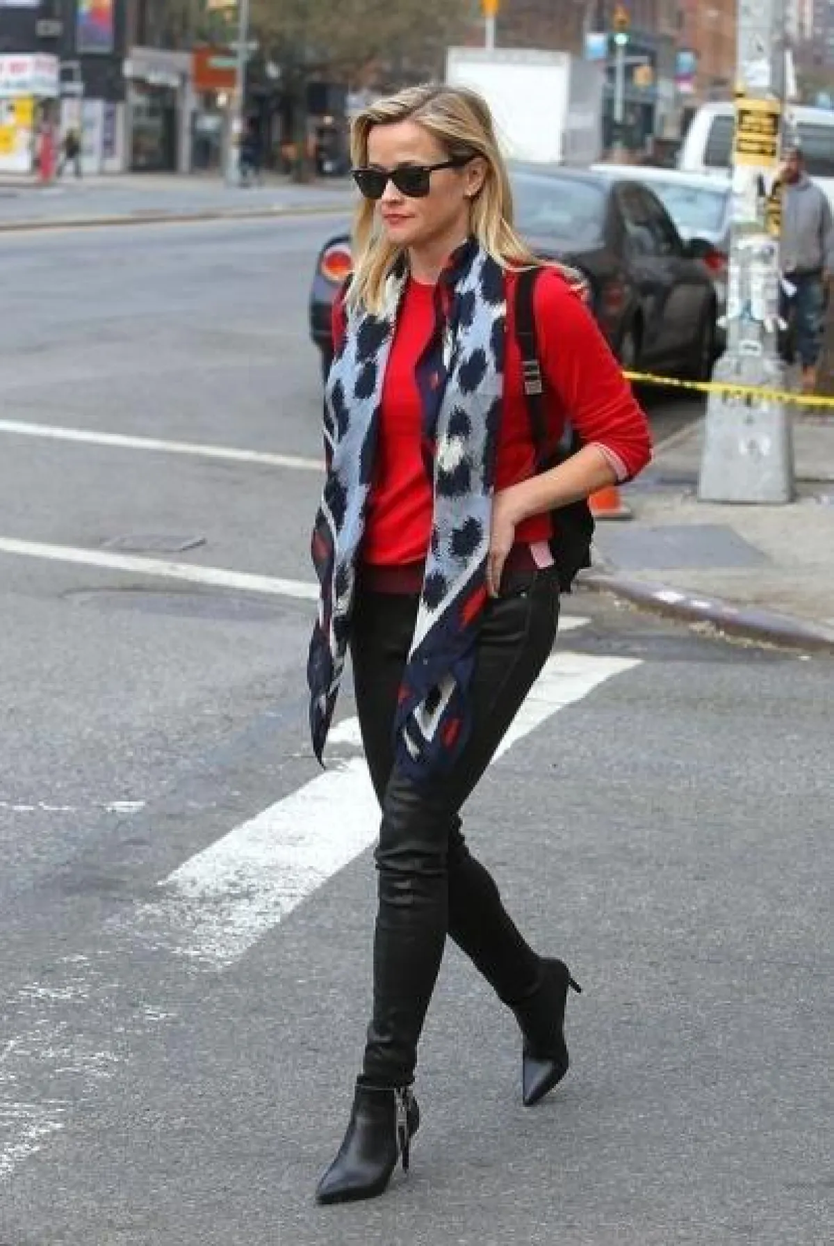 - الأوشحة العريضة تمنحكِ اطلالة مختلفة تمامًا، ويمكن تنسيقها مع البناطيل أو مع الفساتين على غرار النجمة Anne Hathaway.