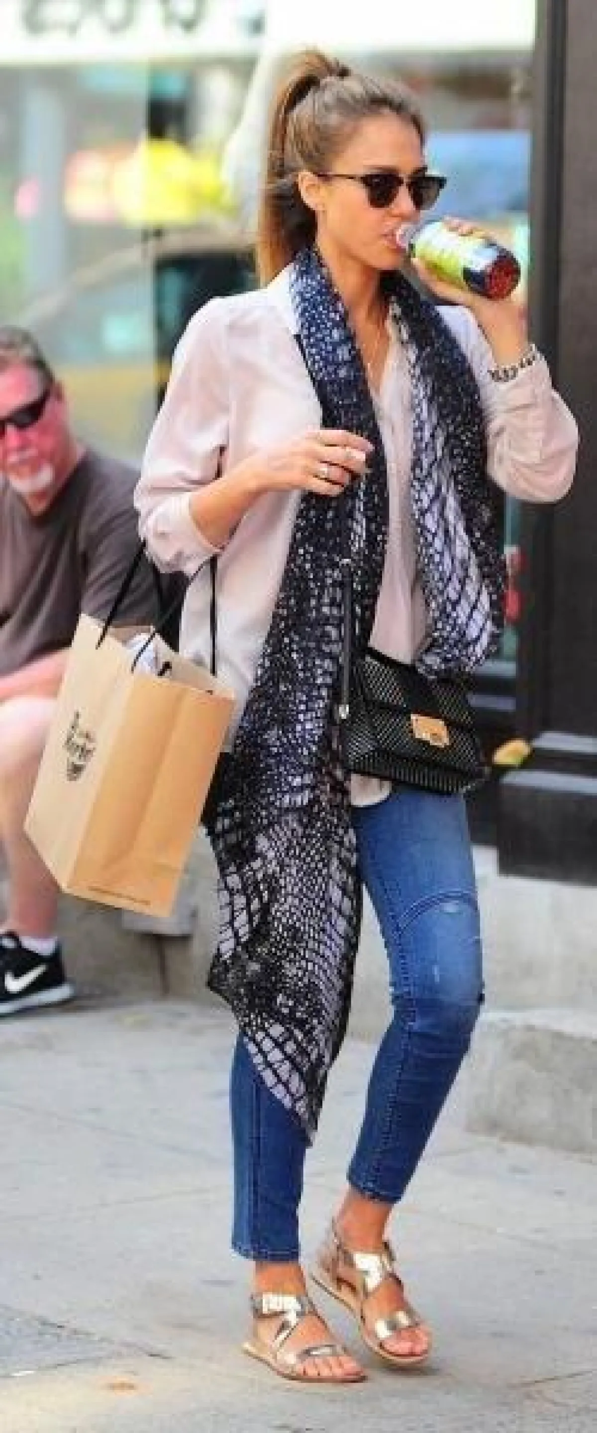 شاهدي ما اخترناه لكِ من صور لنجمات كـ Blake Lively,Jennifer Aniston,Jessica Alba وأخريات اعتمدنَ الوشاح أو الـ Scarf لتستلهمي منها اطلالتكِ.