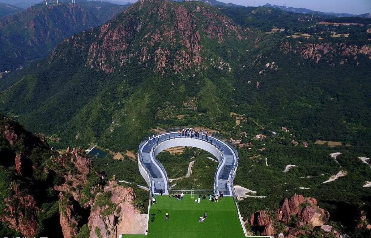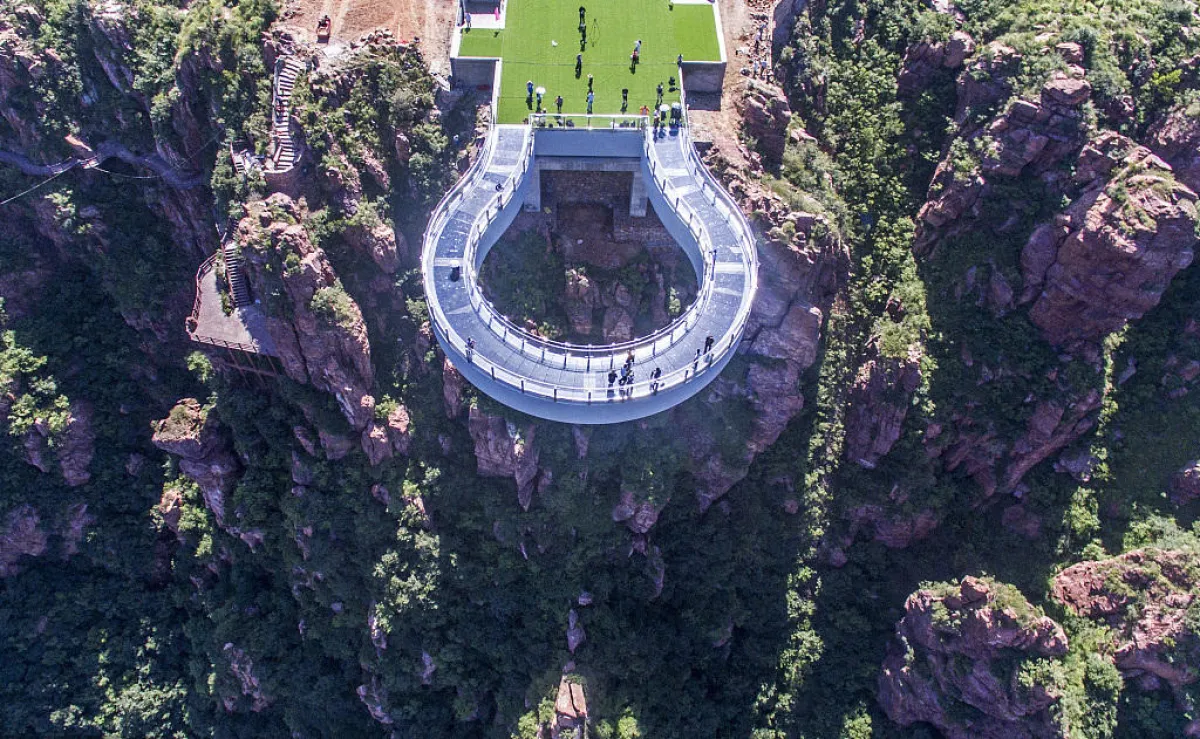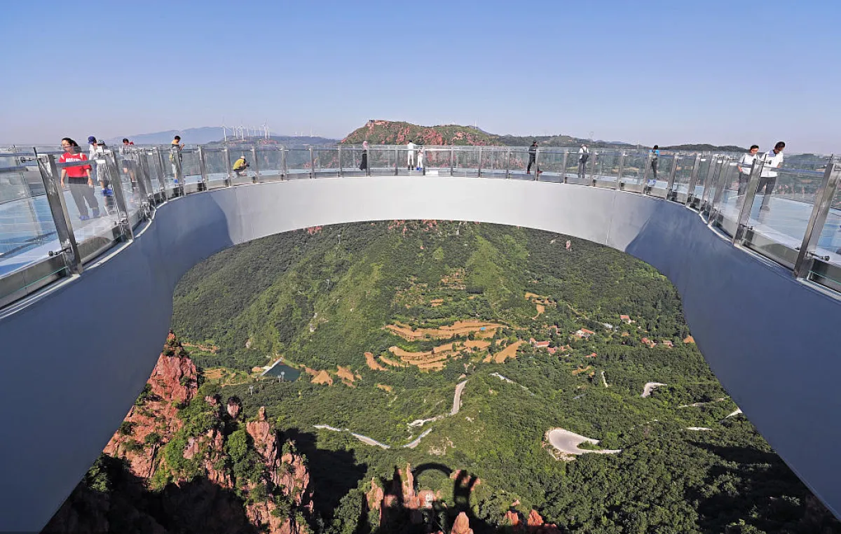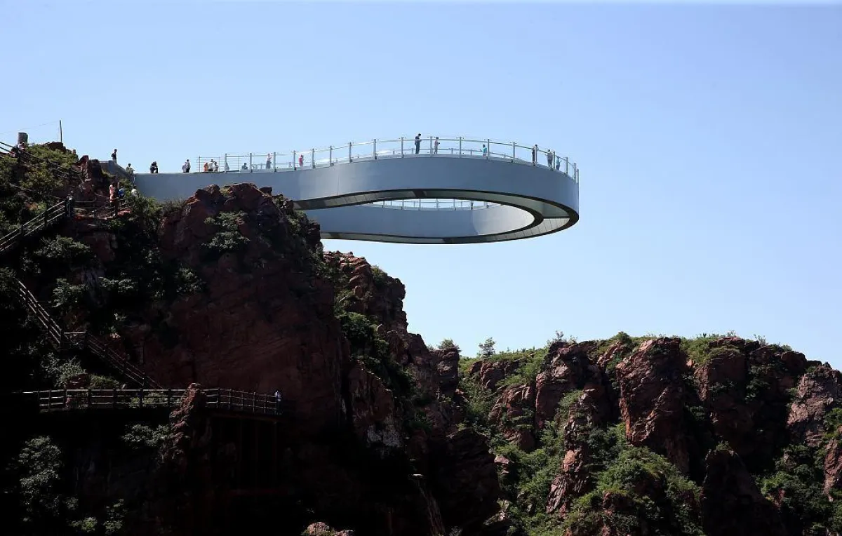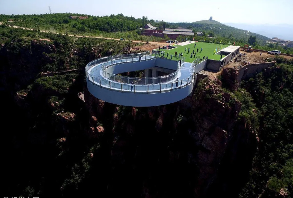 تم افتتاح جسر دائري زجاجي في منطقة "فوكسي شان" السياحية بعد أن استغرق بناؤه ثمانية أشهر في مدينة "إكسينمي"، مقاطعة خنان بوسط الصين. كما نقل موقع "تشاينا ديلي".