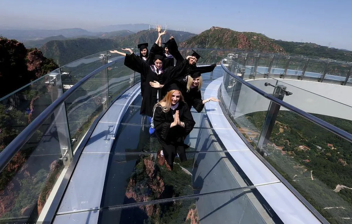 تظهر الصور رواد الجسر وهم يمشون عليه كما لو أنهم يمشون على الهواء، ويستمتعون بالمناظر الخلابة للجبال والمناطق الخضراء الجميلة والهواء النقي.