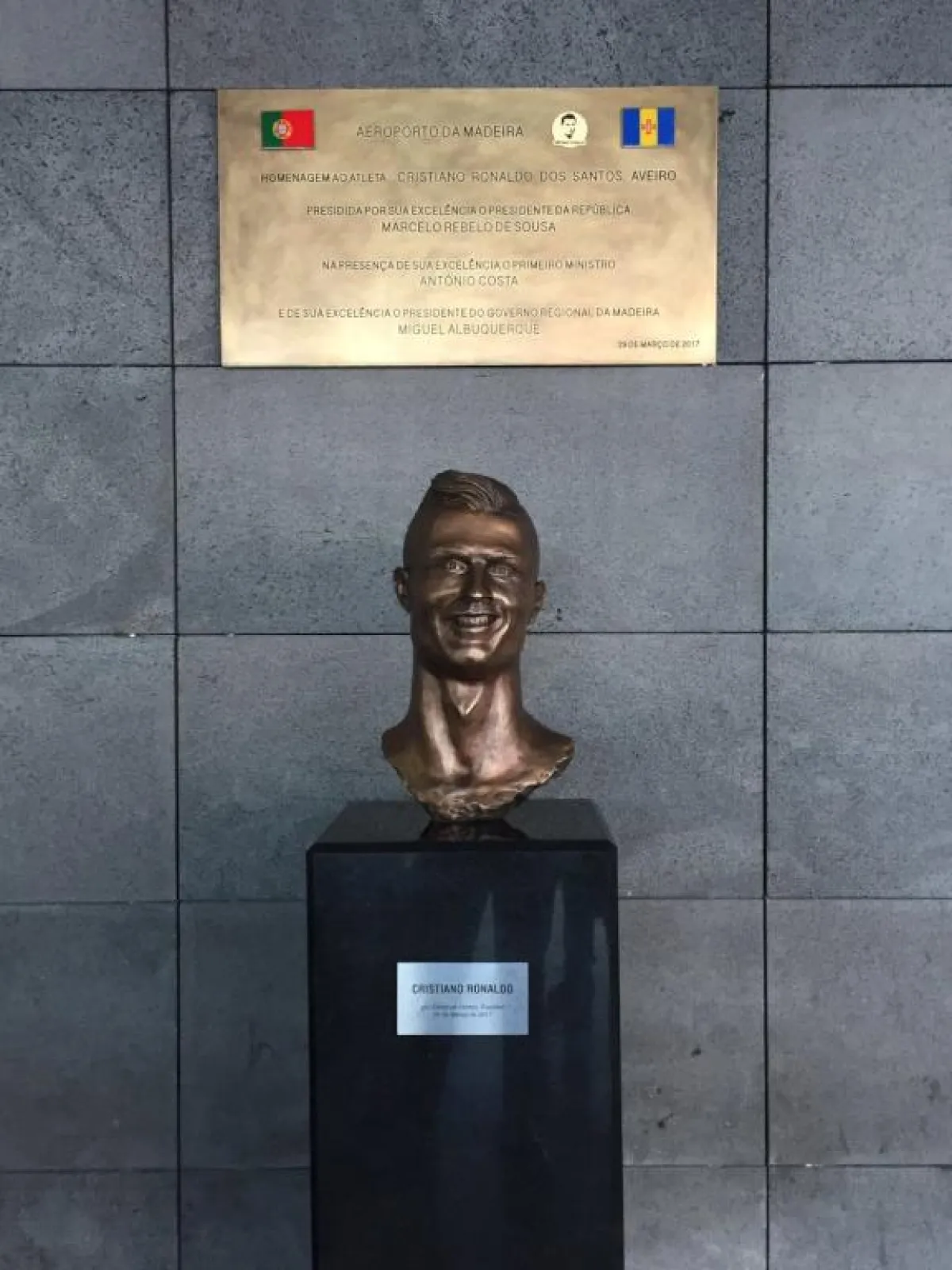 ووفقاً لصحيفة "الإندبندنت" البريطانية، فإن التمثال الجديد تم وضعه مكان القديم في المدخل الرئيسي لمطار جزيرة ماديرا مسقط رأس كريستيانو رونالدو، وقد تم هذا التغيير بناء على طلب من أسرة اللاعب.