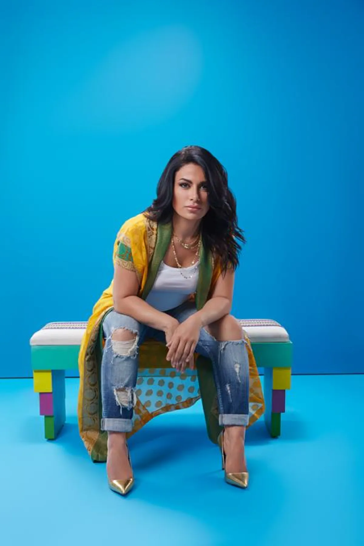 كما تختار صبا القطع التي تحمل طابع الفلكلور أو التراث سواء كان الأردني، الخليجي أو المصري، والذي يناسب لون بشرتها وشعرها وعينيها السوداوين، مثل هذا الكارديجان الطويل، بالألوان المشرقة، مع الجينز المقطع، والحذاء المثلّث من الأمام، باللون الذهبي.
