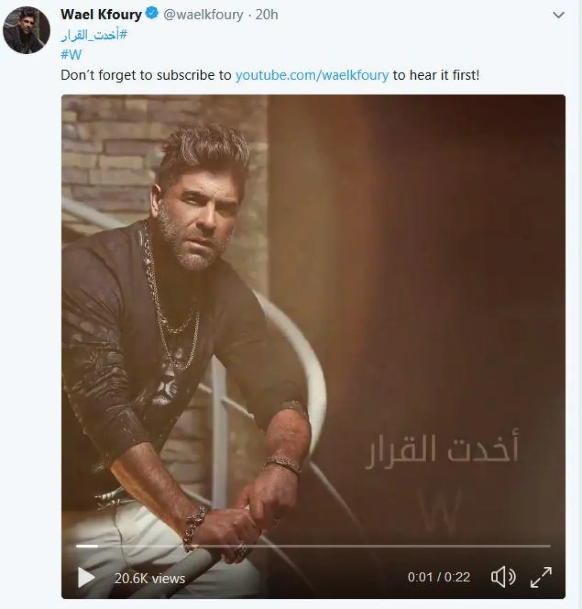 فاجىء الفنان وائل كفوري جمهوره يوم أمس بإطلاق مقطع من أغنية "أخدت القرار" عبر حسابه الخاص على "تويتر".