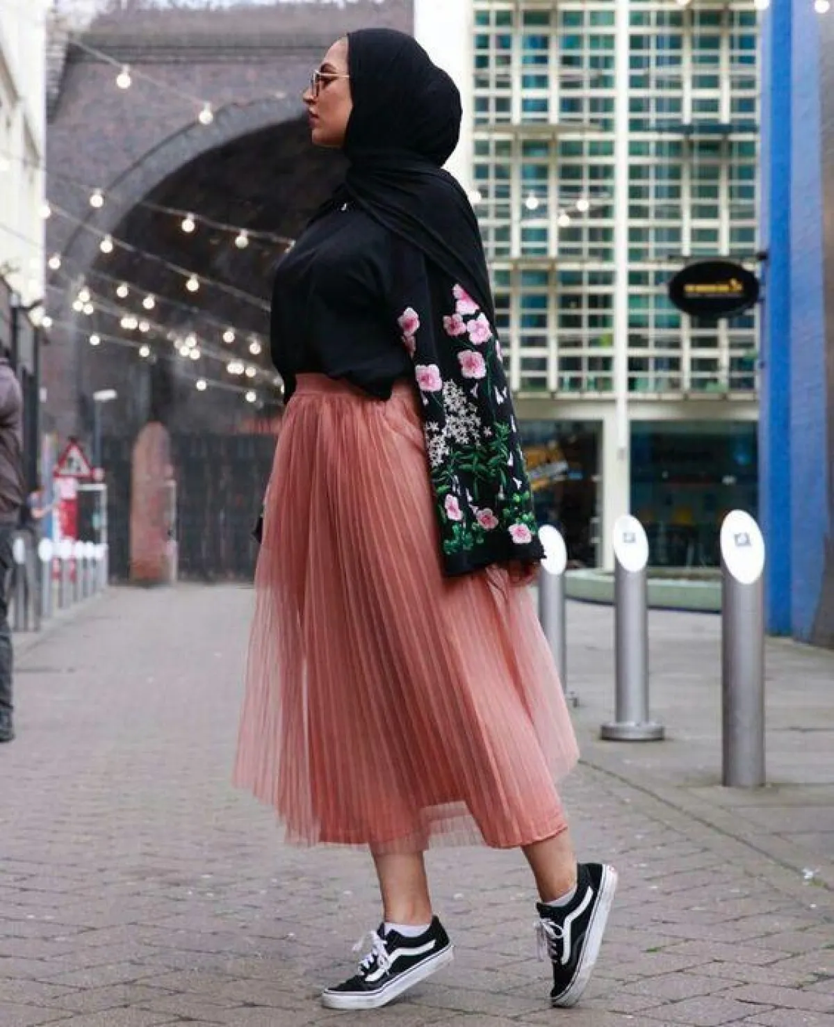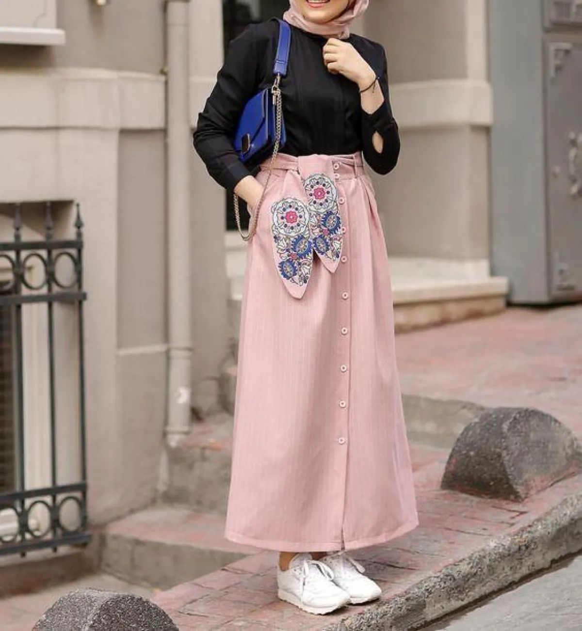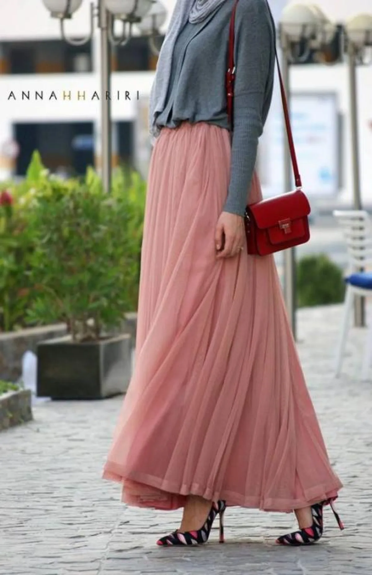 أتعلمين أنك يمكنك بكل سهولة تنسيق التنورة الوردي مع اللون الرمادي، أو الأبيض على أن تجعلي الحقيبة باللون الأحمر الداكن؟ حاولي تطبيق هذه الإطلالة، وستحصلين على مظهر مميز.