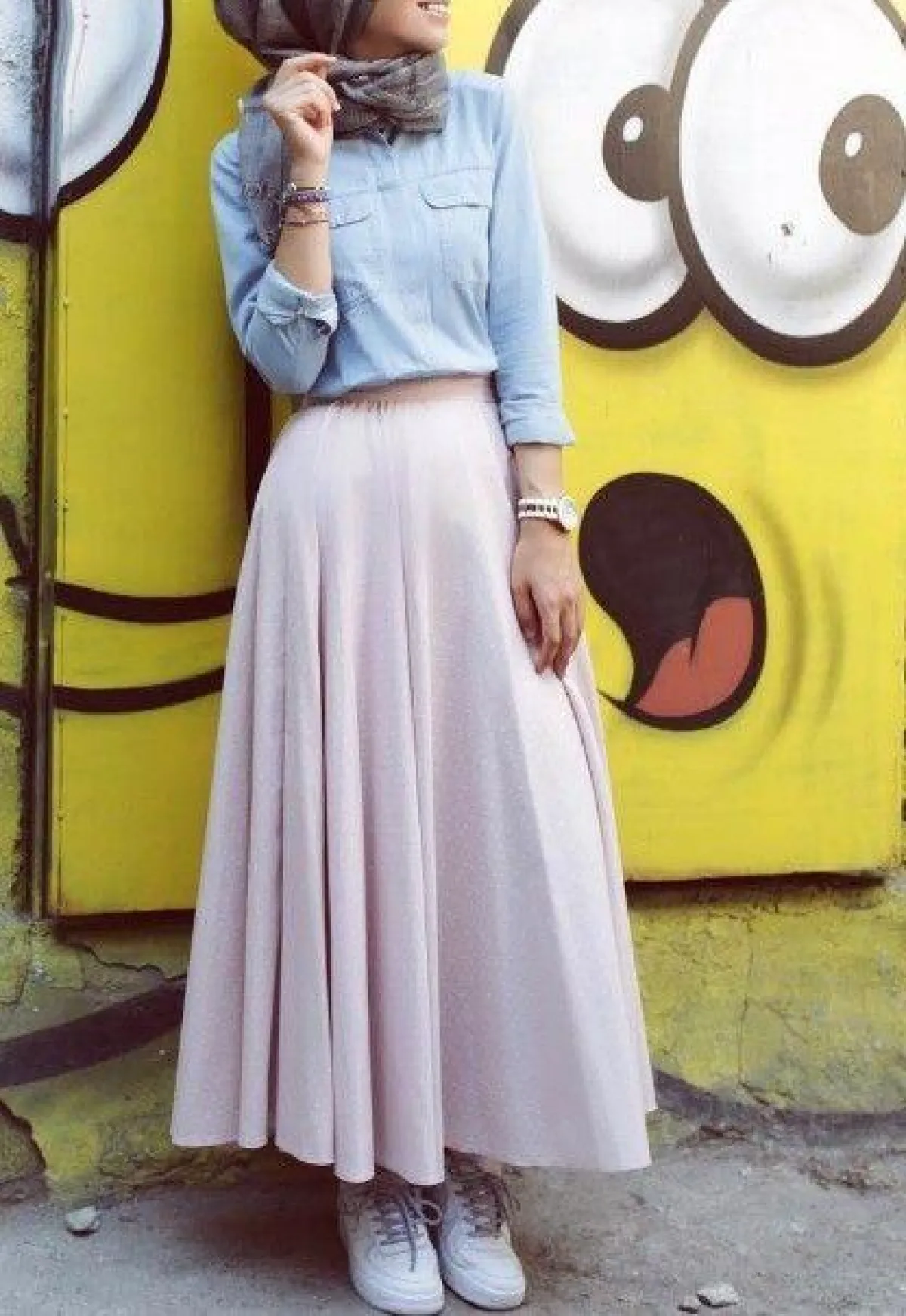 إن كنت تفضلين ارتداء القميص الجينز، فهذا سيمنحك فرصة تنسيقه مع التنورة باللون الوردي وستندهشين من النتيجة.