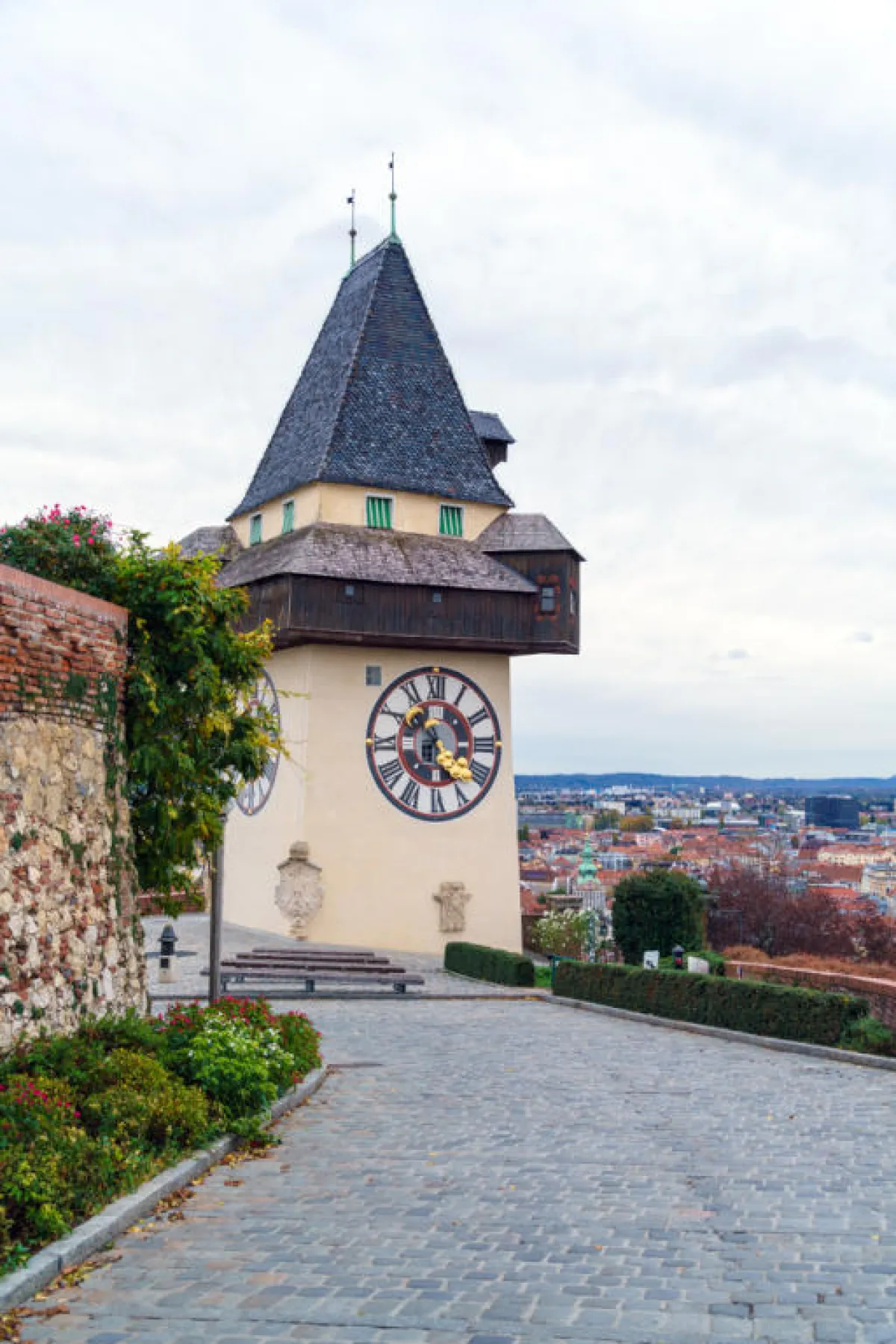 فوق بلدة "غراتس" القديمة، يقع "شلوسبرغ"، التلُّ الذي يرتغ لـ473 مترًا. لبلوغ قمَّة التل، تستغرق الرحلة ثلاث دقائق بواسطة سكَّة الحديد المُعلَّقة. ومن المعالم الأبرز: برج الساعة "ورتوارم" الذي يرتفع لـ 28 مترًا والبئر التركية البالغ قطرها 94 مترًا، و برج الجرس (جلوكنتروم) الذي يرجع تاريخه إلى سنة 1588، فيما الجرس يزن ثمانية أطنان، بالإضافة إلى المقهى الذي يشرف على مناظر بانورامية لـ"غراتس" والمسرح في الهواء الطلق وسكَّة الحديد المُصغَّرة للأطفال.