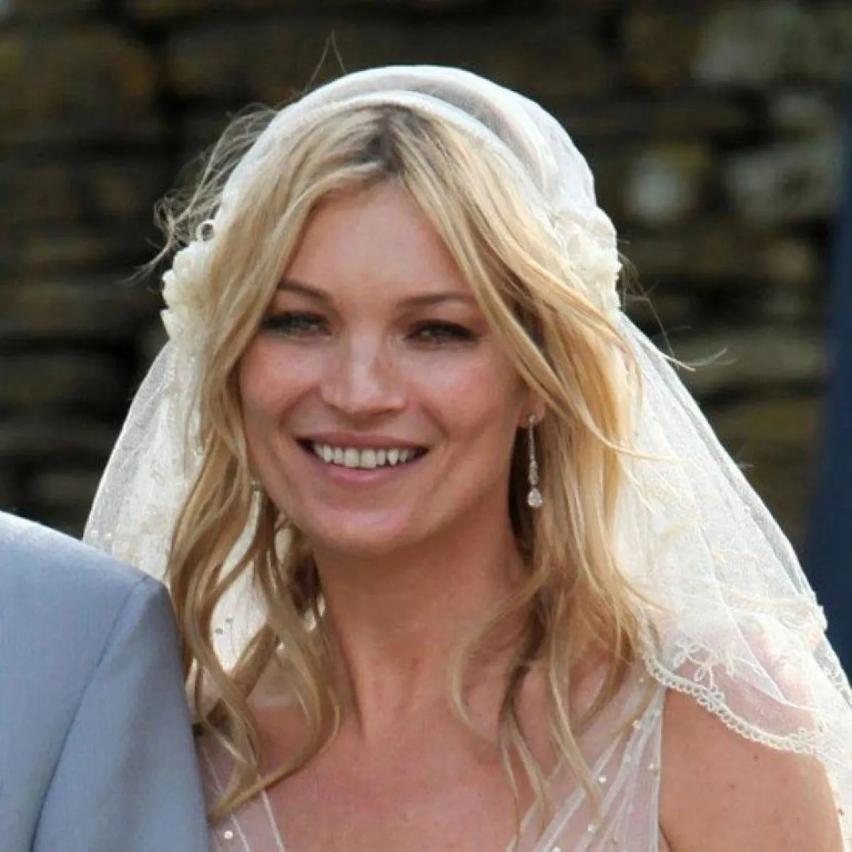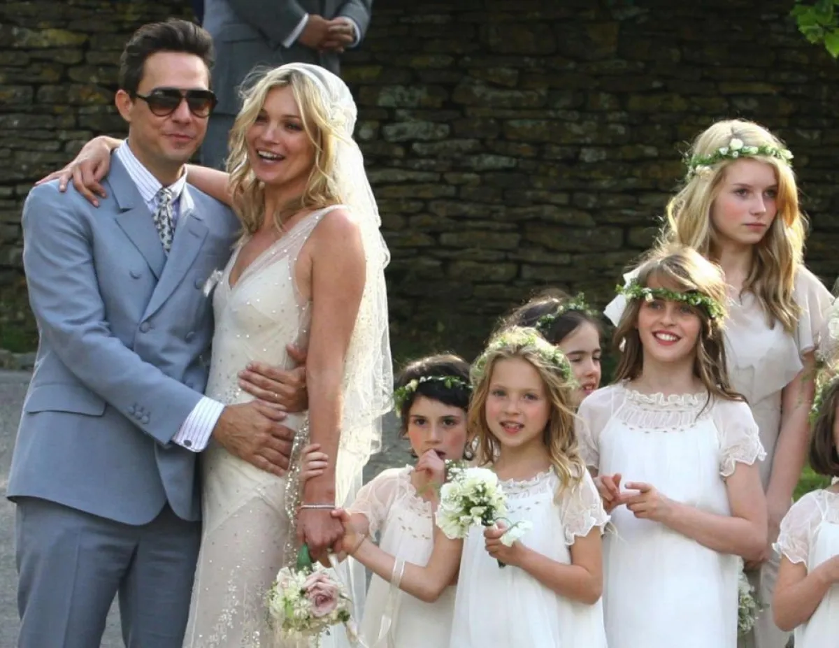 أما عارضة الأزياء كيت موس Kate Moss فقد بدت إطلالتها مبتكرة في حفل زفافها، وظهرت الورود يميناً ويساراً على الطرحة.