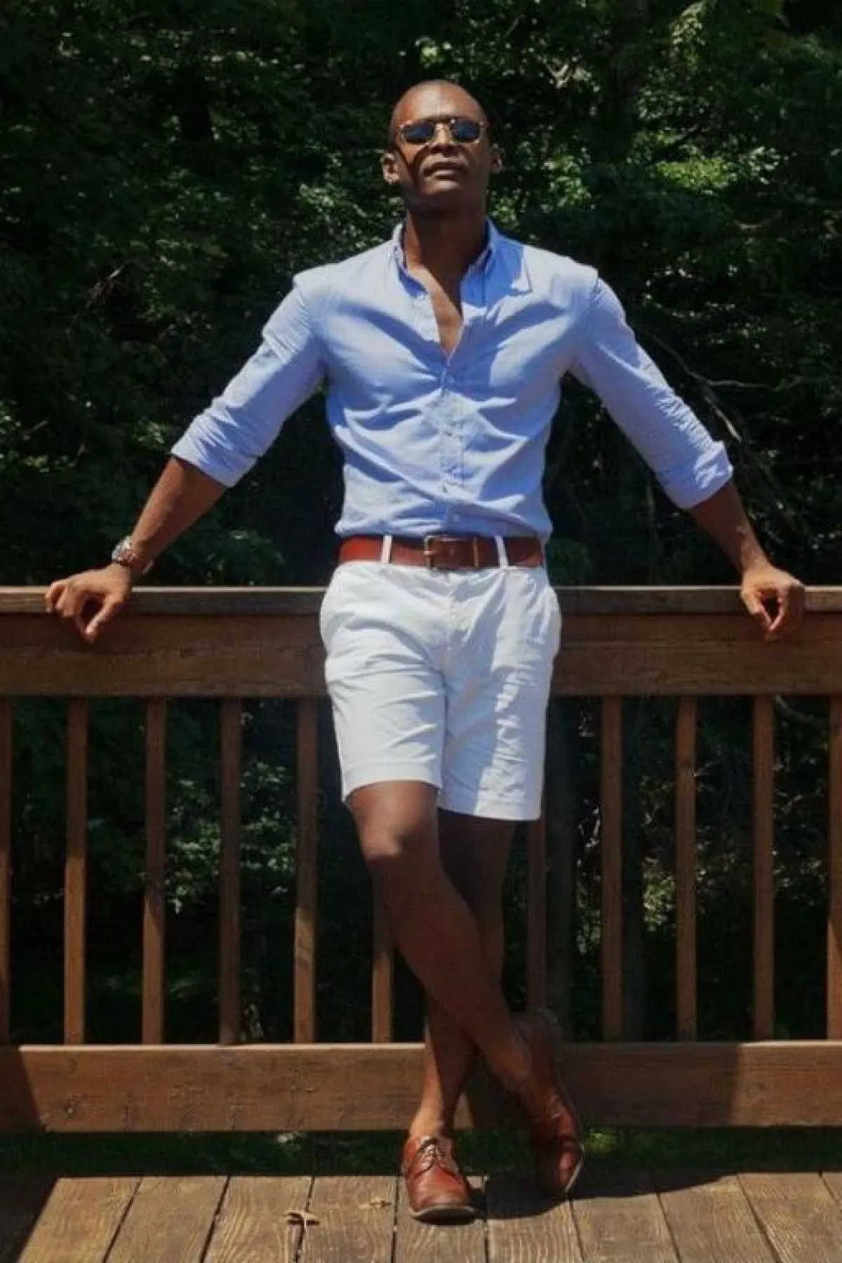 ليس شرطًا أن تتقيد بـ التيشرت الكاجوال لارتدائه مع الشورت، إذ يمكنك ارتداء القميص ذي الأزرار لدمج الكاجوال مع الكلاسيك، على أن يكون القميص خارج الشورت.