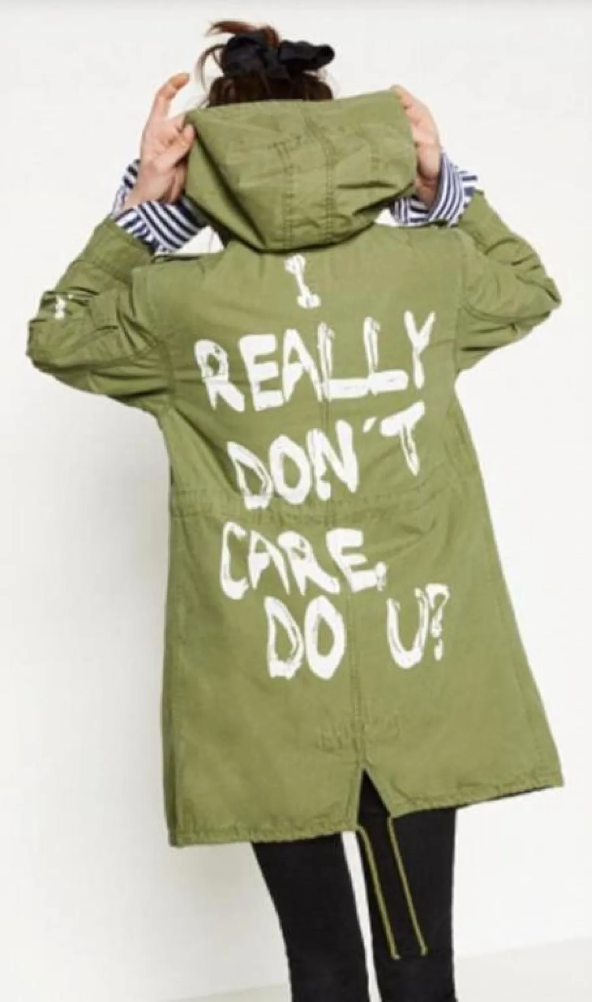 وقد ارتدت ميلانيا بنطلونًا وكنزة باللون الأبيض، مع جاكيت باللون الزيتي من Zara، كُتب عليها باللون الأبيض "هذا الأمر حقًّا لا يهمني. ماذا عنكم أنتم؟" خلال زيارتها إلى ولاية تكساس وتحديدًا إلى مركز لإيواء أطفال مهاجرين فُصلوا عن ذويهم، بسبب قرار ترامب الجائر.
