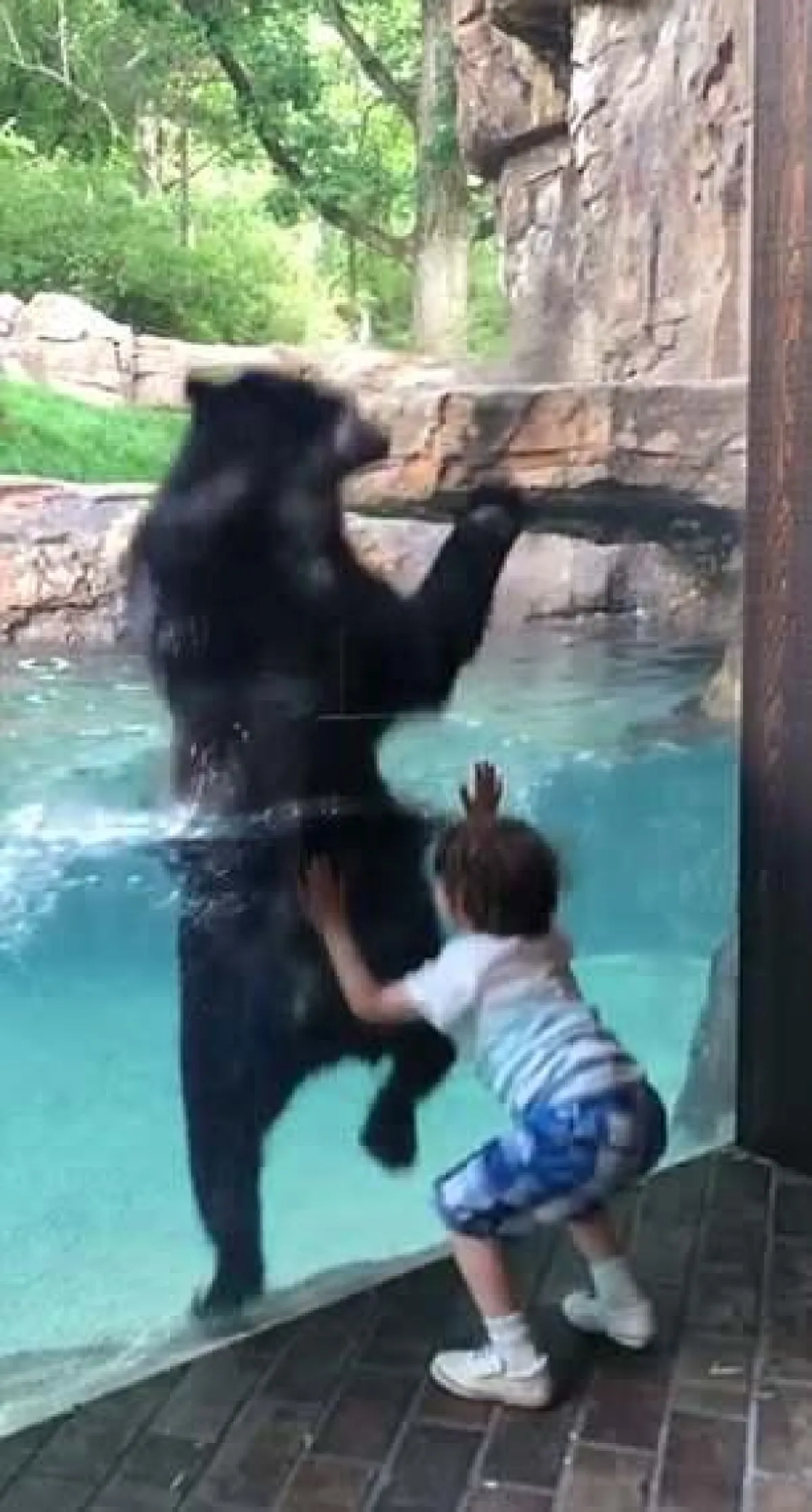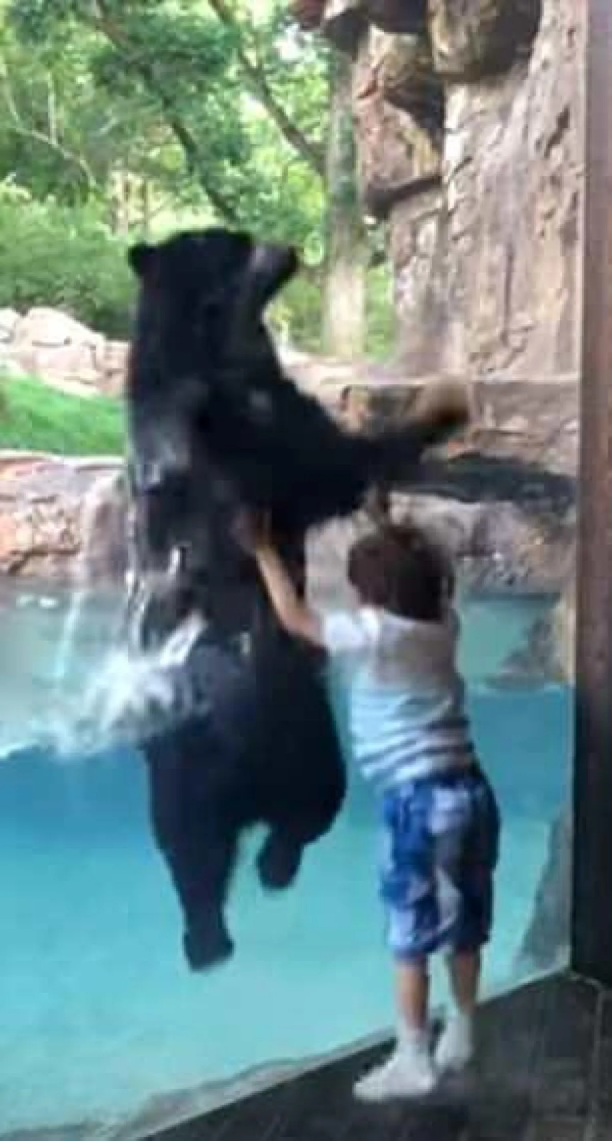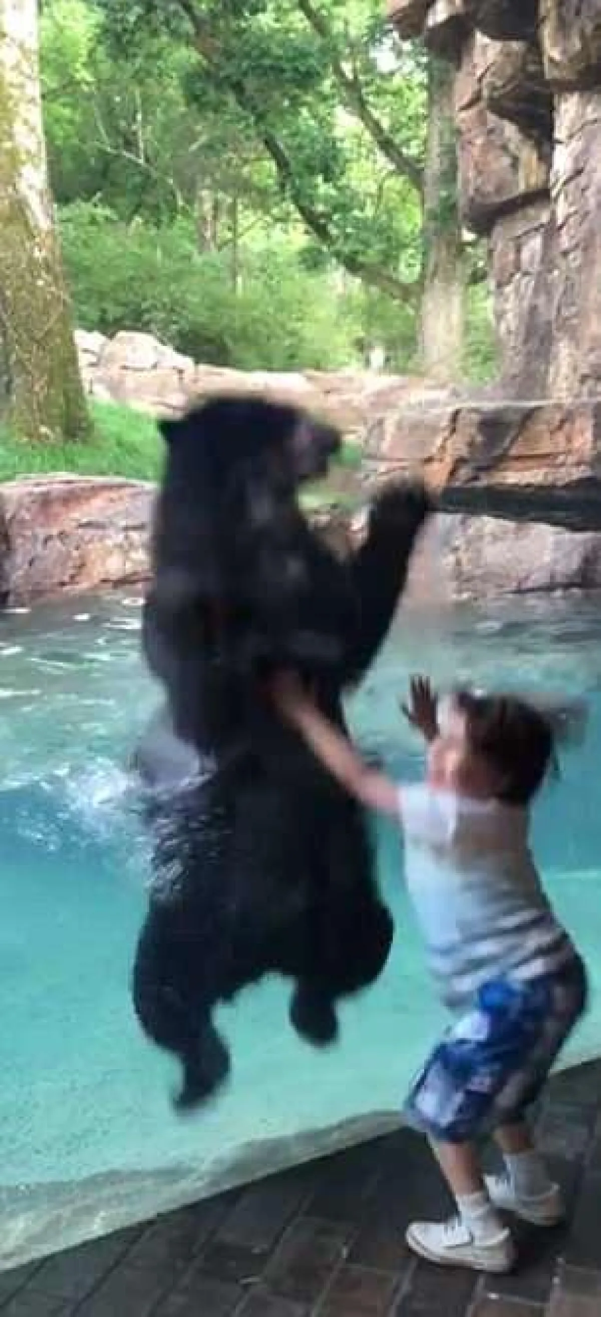 حيث تحولت رحلة إلى حديقة الحيوانات إلى ذكرى لا تنسى بشكل خاص، لطفل يبلغ من العمر خمس سنوات؛ عندما بدأ القفز، وبدأ الدب بتقليده، نقلاً عن موقع «ديلي ميل».