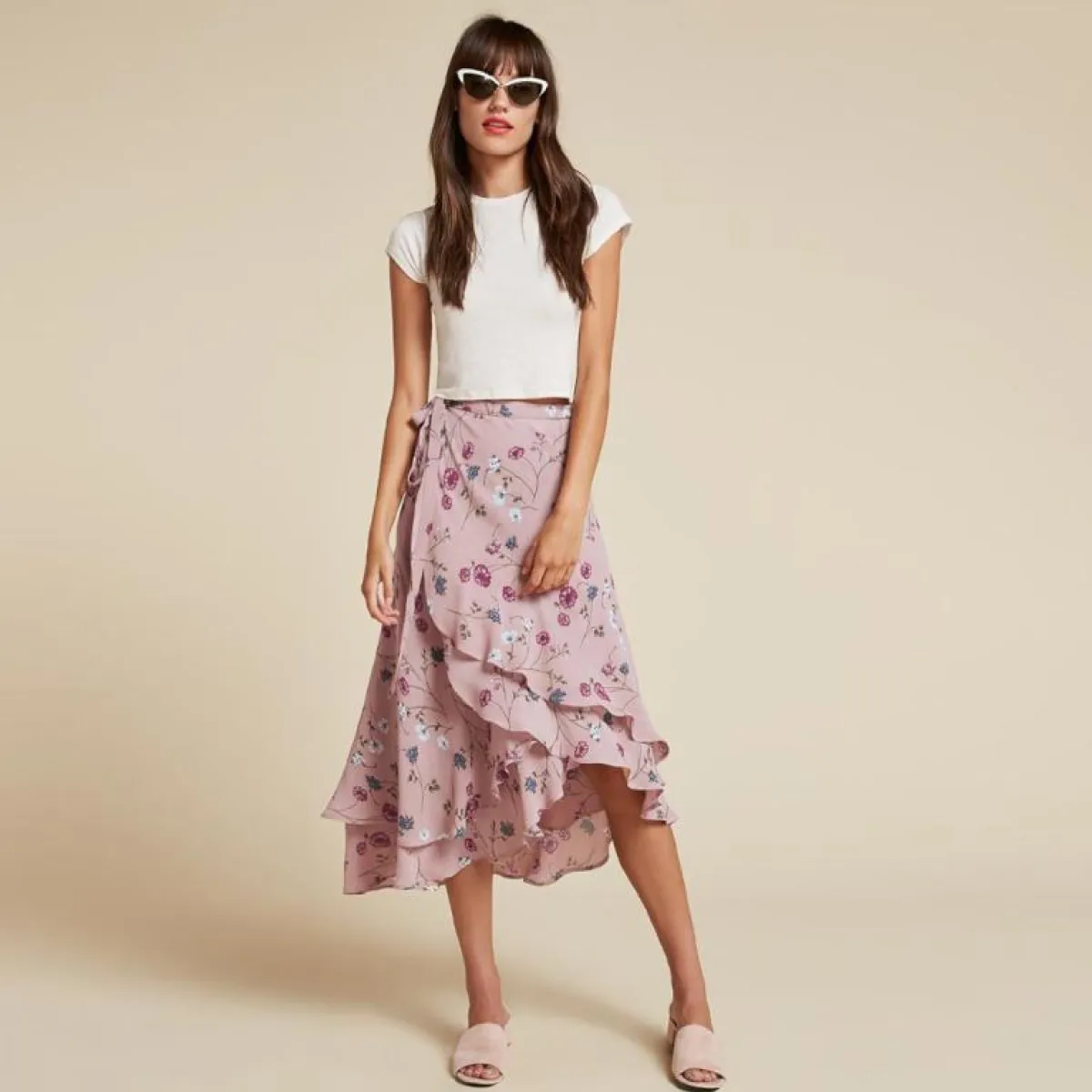 الورود لاغنى عنها في إطلالات الربيع، بإمكانكِ اختيار فستان السندريلا القصير، بنصف أكمام أو بدون، ضيق من ناحية الخصر، ومنفوش قليلًا أسفل الخصر. نسّقيه مع قبعة الرأس الخوص والنظارة الدائرية.