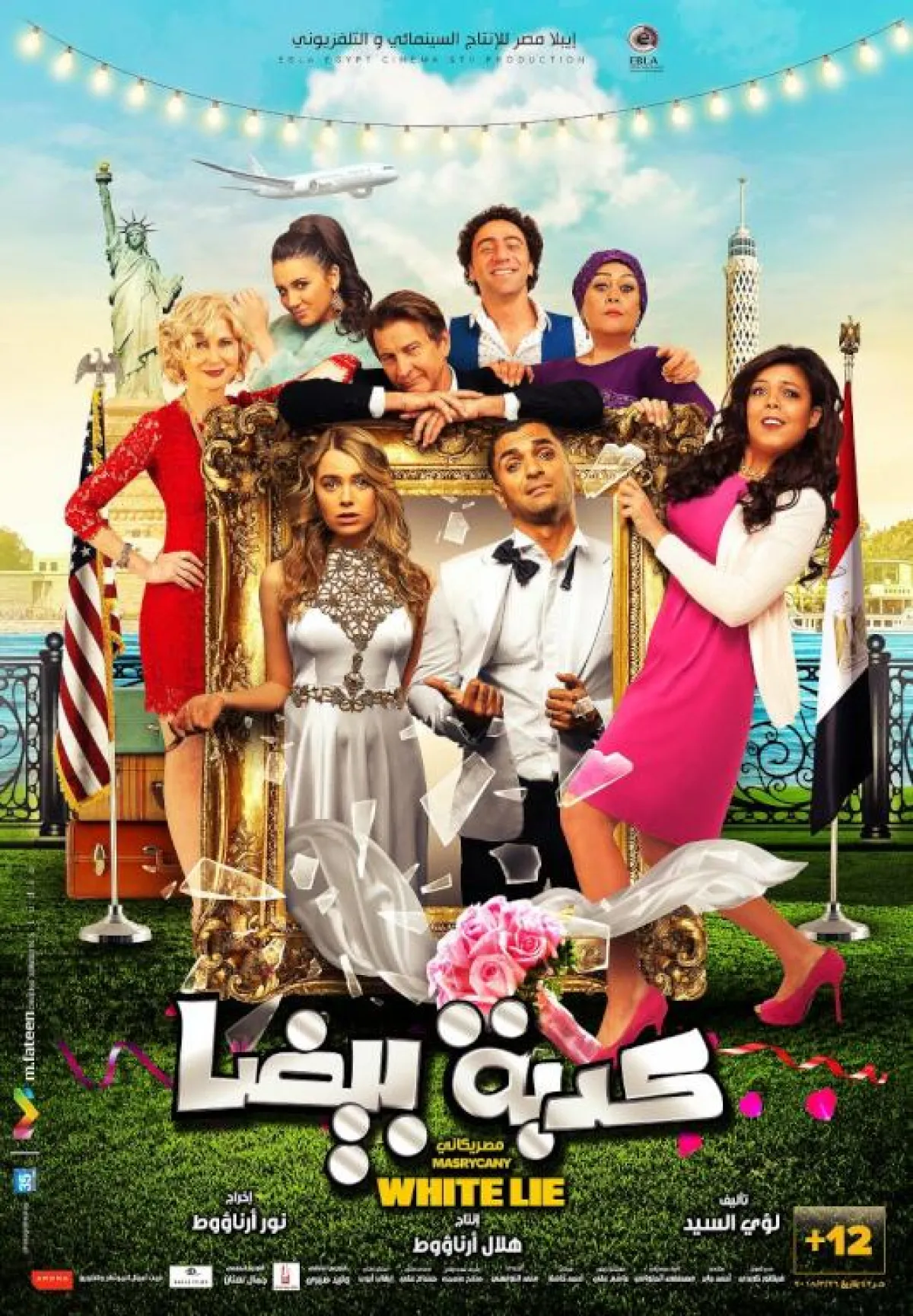 "كدبة بيضا" فكرة وإخراج السورية نور أرناؤوط، سيناريو وحوار لؤي السيد وبطولة كل من ناهد السباعي، محمد سلام، والفنانة هالة فاخر وعدد من النجوم الأميركيين، منهم المصري سامي الشيخ وألكسندرا جروسي، إليشيا دي، بريت كولين، وبيث برودريك، وإنتاج "إيبلا" مصر للإنتاج السينمائي.