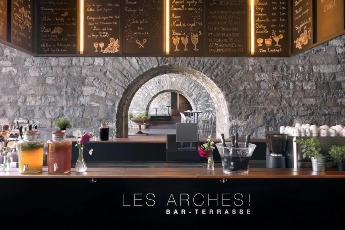 • "براسوري دو مو بينو": تطلُّ الحانة على المناظر البانورامية الخلَّابة للبحيرة المتلألئة والجبال الشاهقة. وهي تُقدِّم منتجات مقاطعة "فو"، مع الإشارة إلى أنَّ لائحة الطعام تُناسب النباتيين خصوصًا. وتنظِّم بعض الفعاليات في المكان، مثل: التذوُّق والعروض والسهرات وحفلات الحديقة.