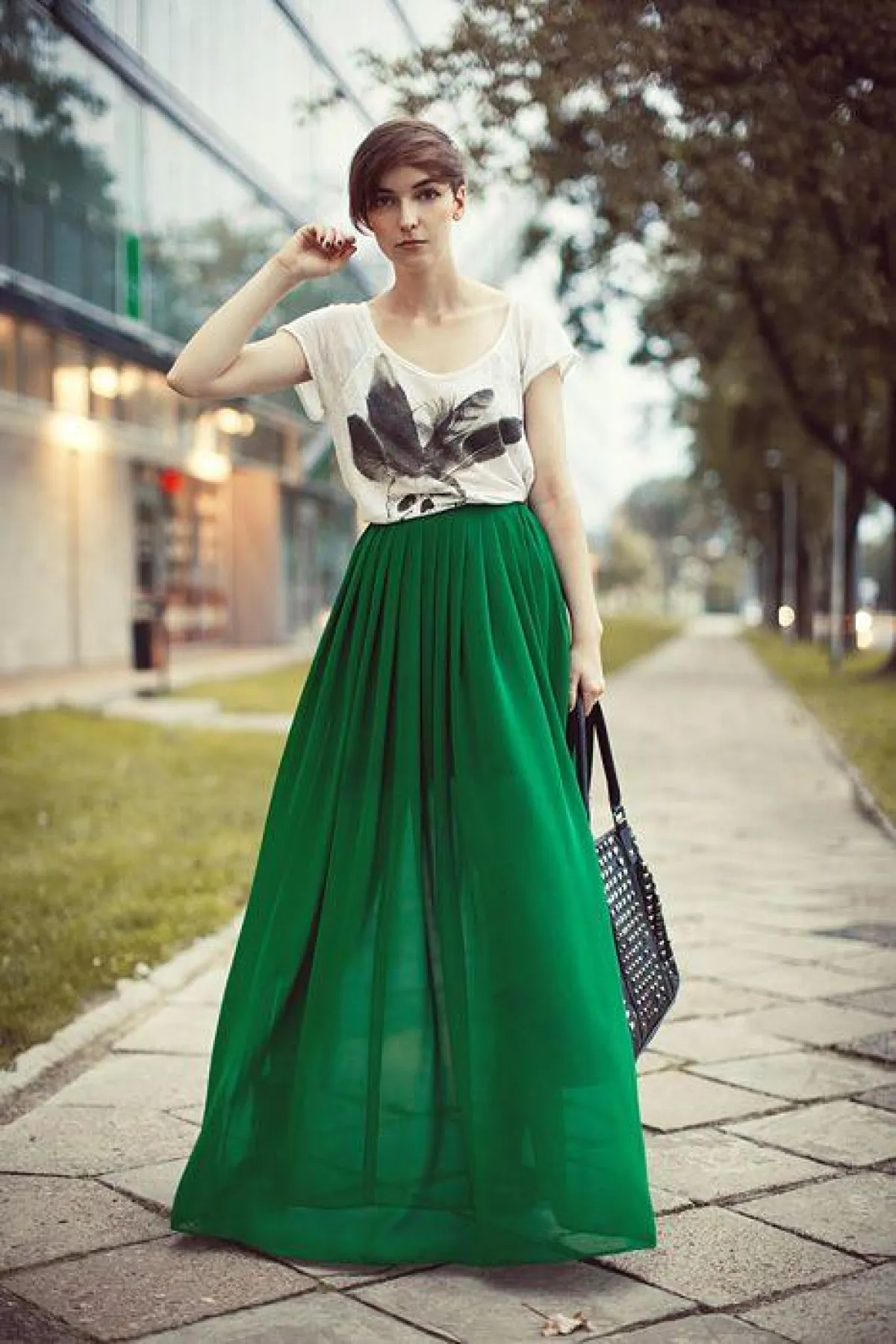 أعيدي إحياء تنورتكِ الشيفون الطويلة من جديد، وارتديها مع تيشرت بلون يناسب لون التنورة، واختاري الحذاء الكاجوال، والكلتش كبير الحجم، أو الحقيبة الميني، تناسب أجواء الصيف ومناسبات النهار.