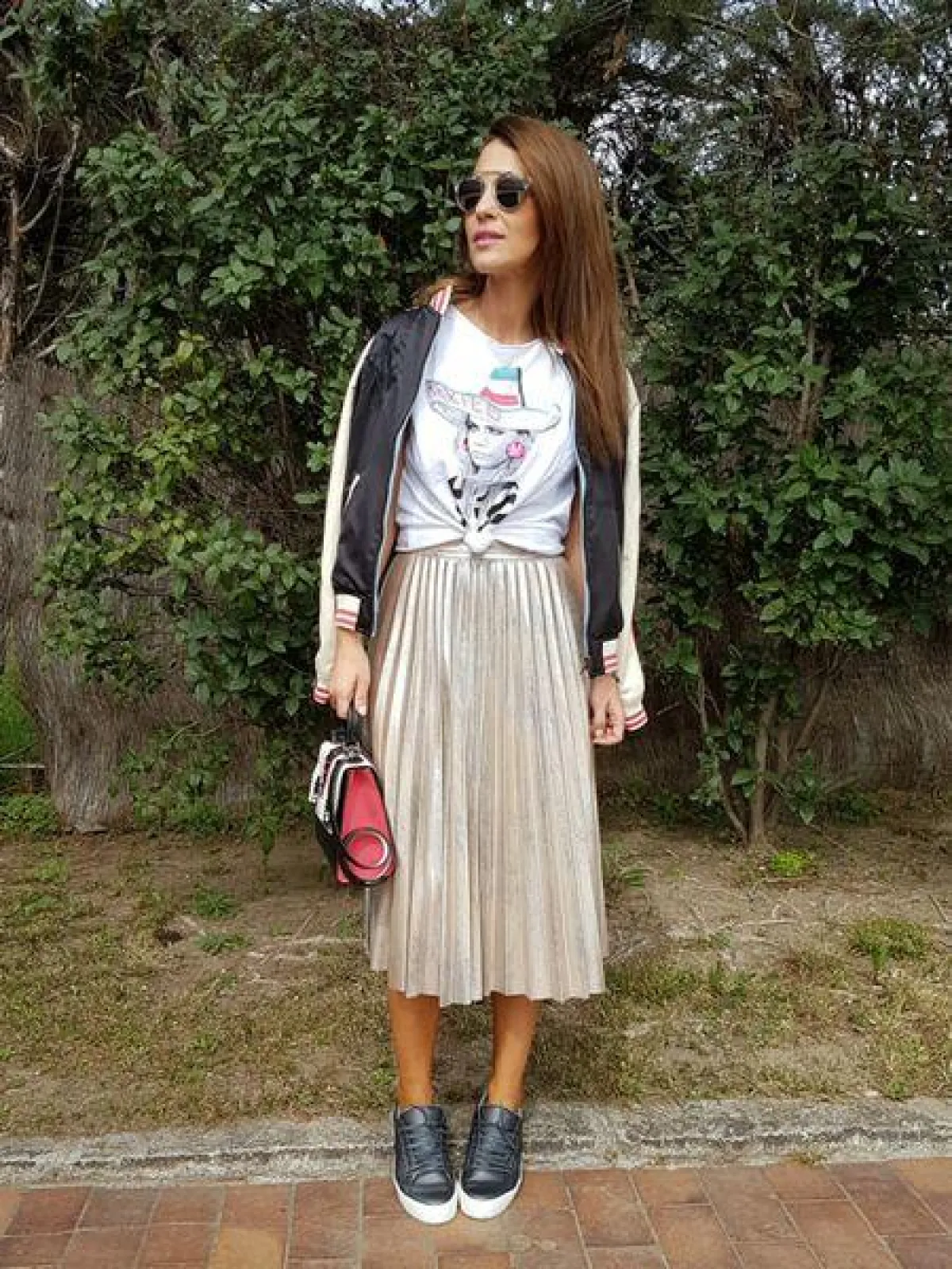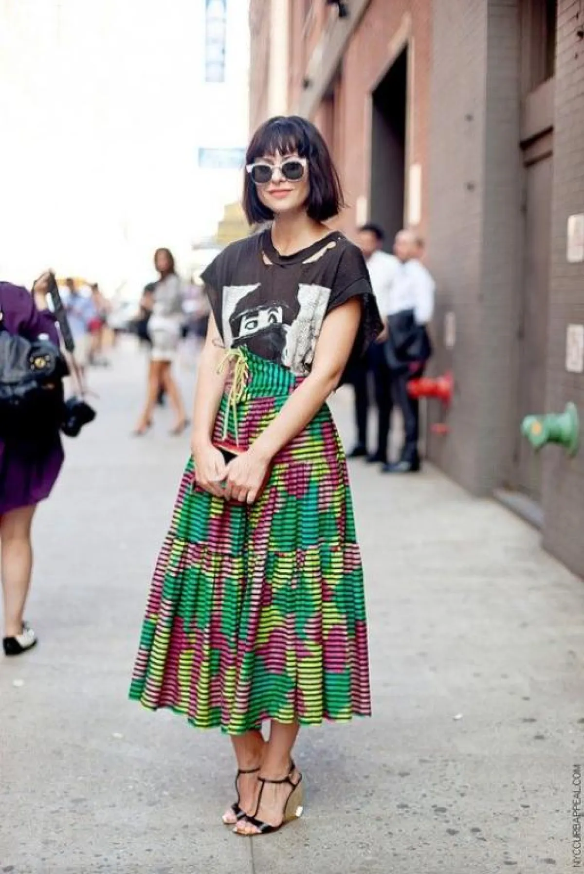 أعجبنا اختيار التنورة البليسيه أو ذات التكسيرات الطويلة، والتي ظهرت بشكل كبير في أزياء الشوارع الخاصة بأسابيع الموضة العالمية، واختارتها الفاشنيستات العالميات مع التيشرت الصيفي المُنعش.