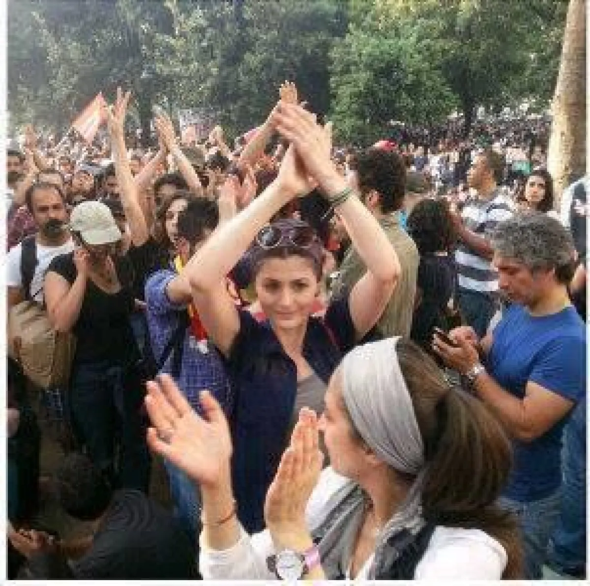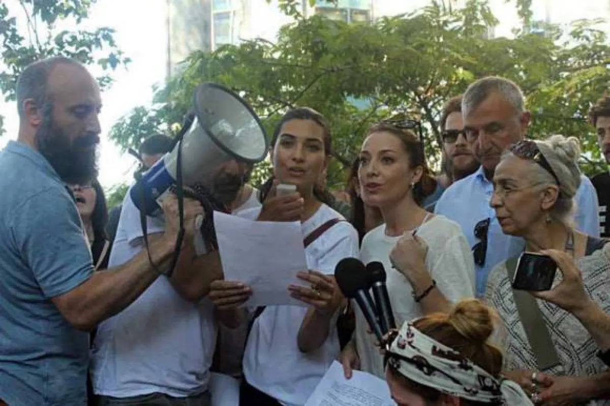 وكان من بين المتظاهرين زملاؤها في مسلسل "حريم السلطان"، على رأسهم خالد أرغنش وزوجته بيرغوزار كوريل، اللذين تعرّضا لقنابل الغاز المسيّلة للدموع.