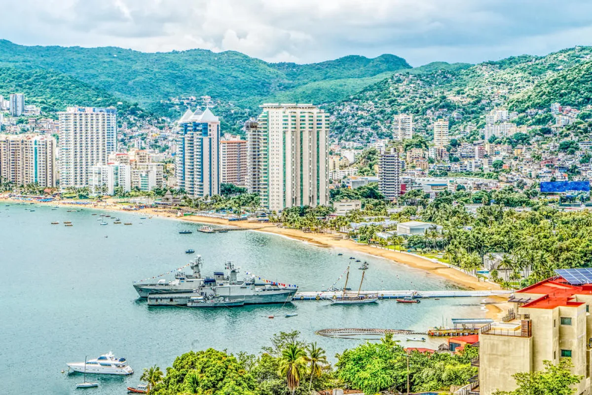 أكابولكو منتجع شاطئي لطالما جذب نجوم منتصف القرن العشرين، مثل: سيناترا وباردو وإليزابيث تايلور. أكابولكو المدعومة من جبال "سييرا مادري ديل سور"، تضمُّ ثلاث مناطق سياحيَّة، هي: "لاس بلاياس" في الشمال حيث تمَّ تشكيل المدينة للمرَّة الأولى، والمنطقة الذهبيَّة الشاهقة على قوس الخليج، و"بونتا ديامانتي" المنعزلة. وتشمل العناوين السياحية الشهيرة في أكابولكو: