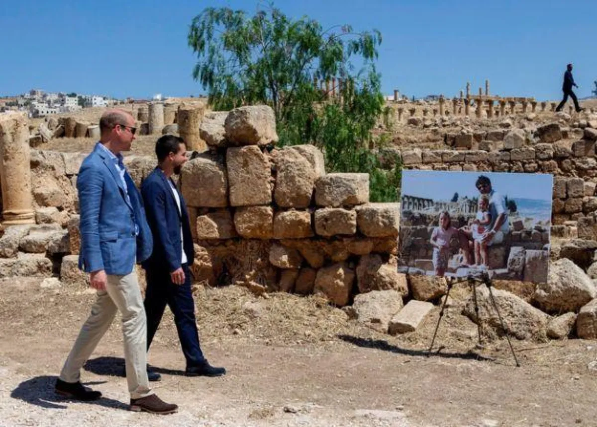 وكان اللافت في الزيارة وضع صورة كبيرة للدوقة كيت ميدلتون Kate Middleton، زوجة الأمير وليام، عندما كانت طفلة تبلغ من العمر 4 أعوام مع والدها في عطلة عائلية بالأردن.