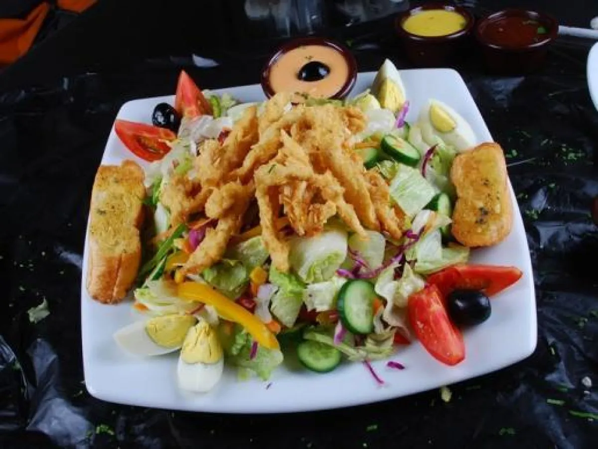 2- ضعي شرائح الطماطم على حافتي الطبق، وكذلك البيض المسلوق والزيتون الأسود وشرائح التوست والموتزريلا ورشي على هذه الخلطة عصير الليمون، وتبلي شرائح الفراخ بالملح والفلفل الأسود، ثم اغمسيه في البيض المضروب باللبن، ثم رشي عليه البقسماط المطحون ثم ضعيه في الزيت المقدوح؛ حتى يحمر ثم ارفعيه وضعيه على طبق التحضير.