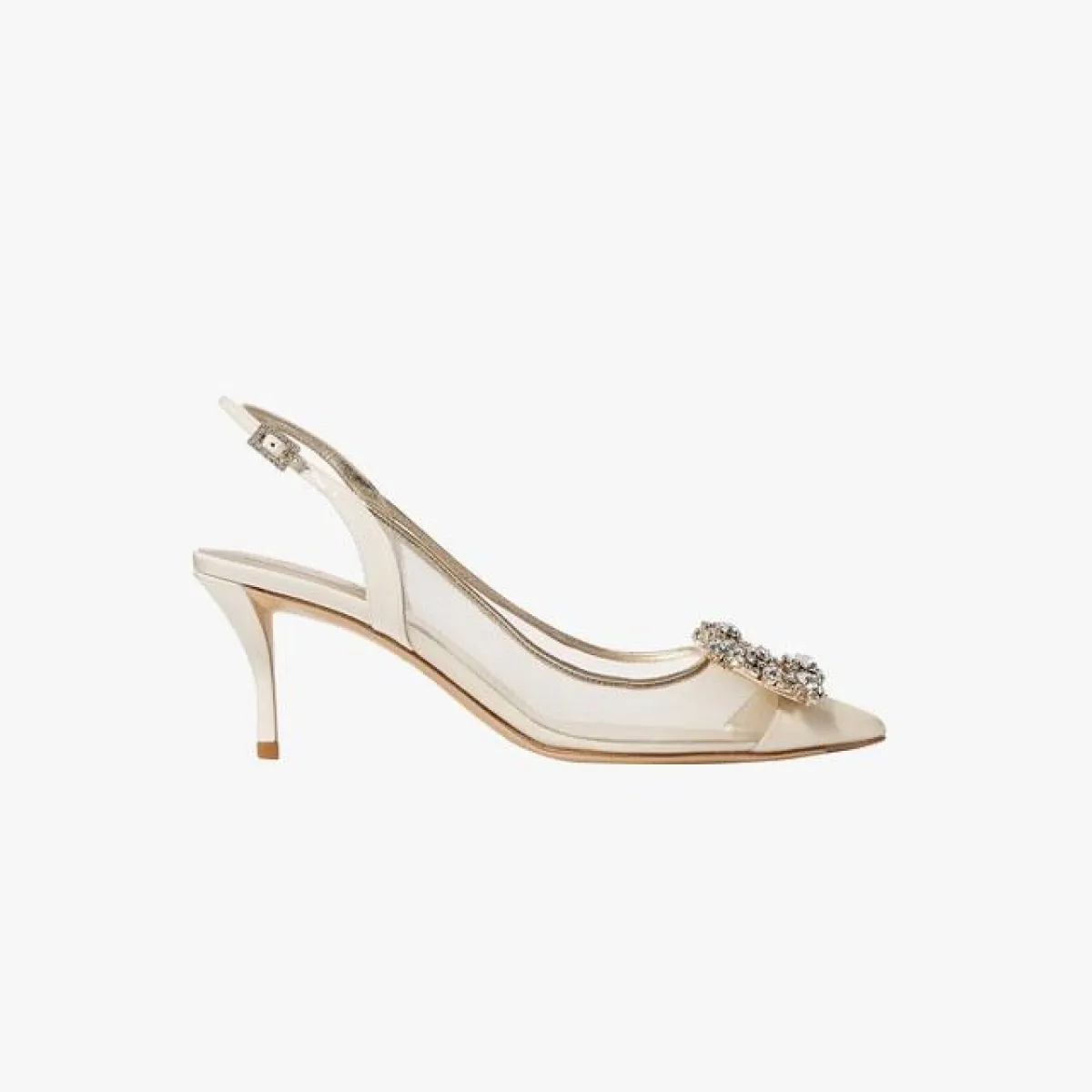 لفتنا هذا التصميم من حذاء العروس من دار Roger Vivier روغر فيفر، بالكعب المخروطي، المتربّع على عرش الموضة هذا العام، والمناسب للـ فساتين الطويلة بتصميم السيرين البسيطة بخامة الستان، مع حزام الخصر.
