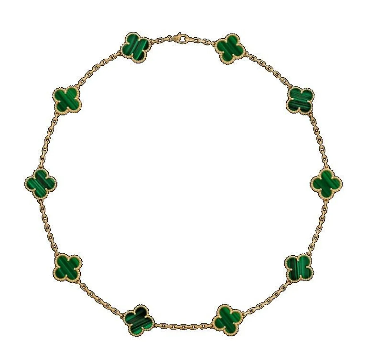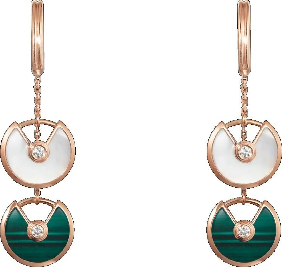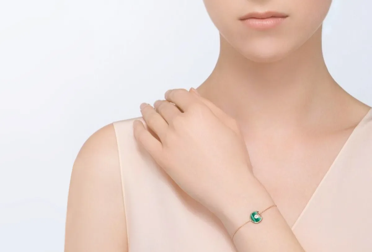 ومن أبرز قطع المجوهرات التي تزيّنت بهذا الحجر الجذاب، لفتتنا الأقراط التي قدمتها دار كارتييه Cartier ضمن مجموعتها أموليت دي كارتييه Amulette de Cartier والمصنوعة من الذهب الأصفر. حيث دمجت بين حجر المالاكيت وعرق اللؤلؤ بأسلوب ساحر، مع لمسة الماس البرّاقة.