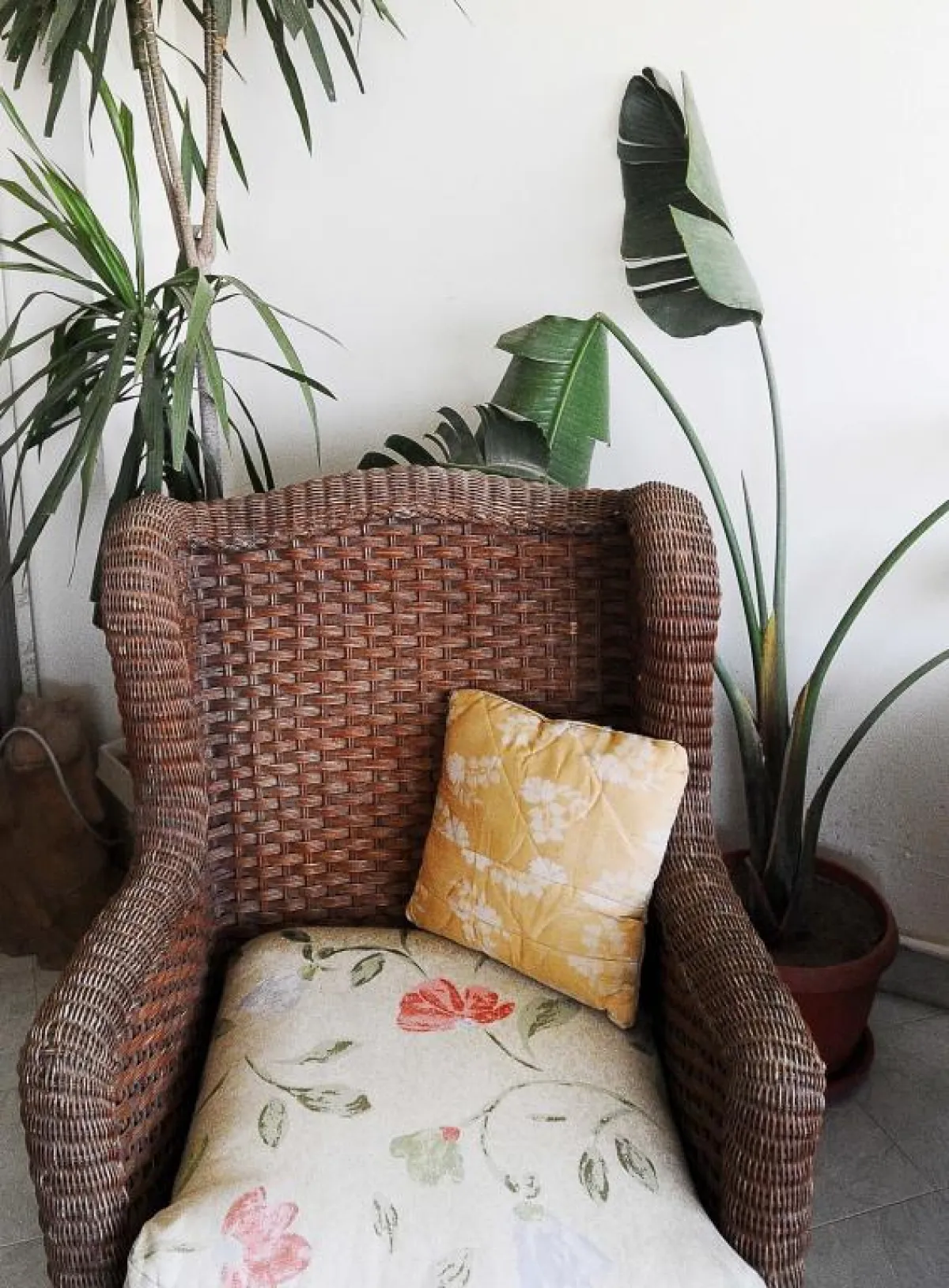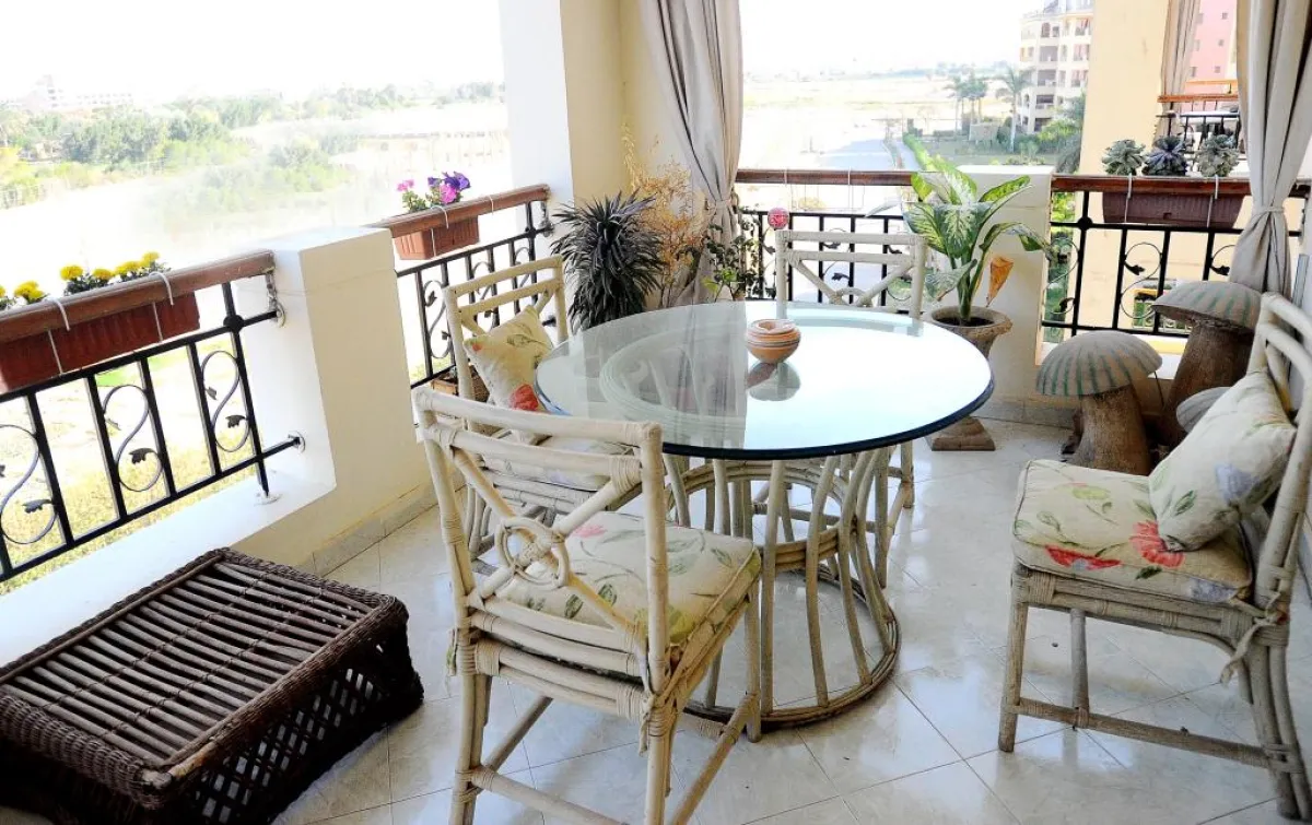 ولم تدع المالكة الشّرفة "تسلم" من لمساتها الفنيّة، فقد أثثتها بجلسة من "البامبو"، وهي عبارة عن 3 كراس بمقاعد عبارة عن وسائد قطنية ملوّنة وطاولة بسطح زجاجي.