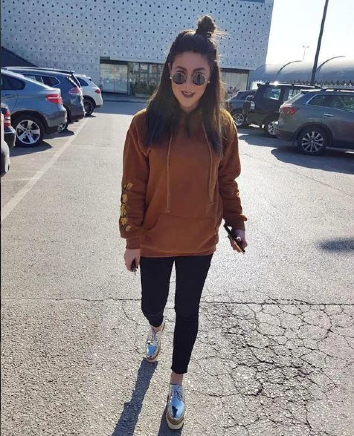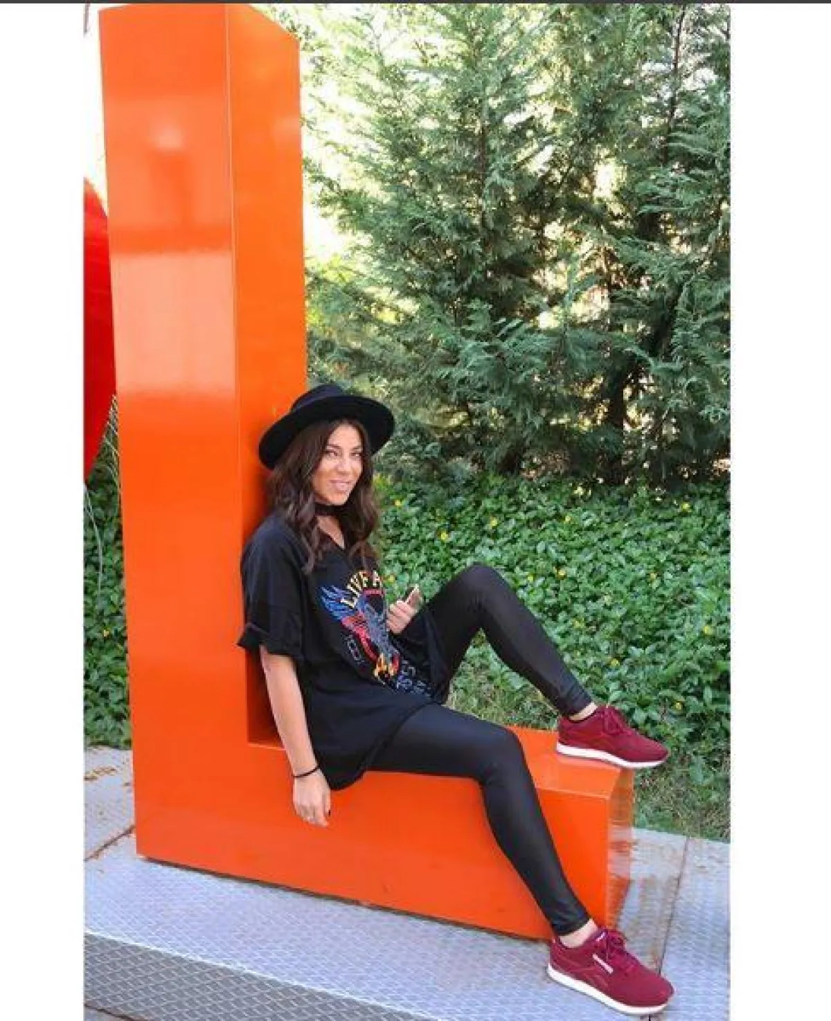 أعجبنا اختيار نجمة ستار أكاديمي للـ بنطلون الرياضي اللامع مع التيشرت الطويل بنصف أكمام، ونسقت معهما قبعة سوداء، مع الحذاء الرياضي، الفوشي.