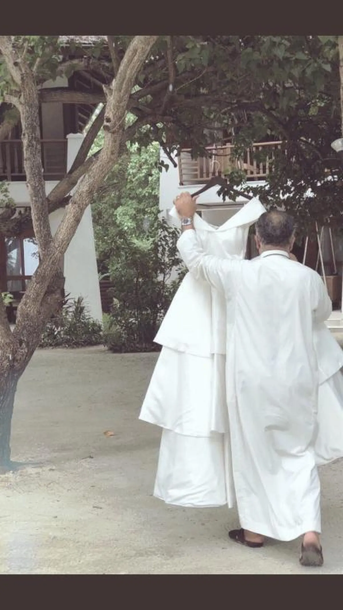 غير أنّ سارة الودعاني لم تلتفت لانتقادات رواد مواقع التواصل الاجتماعي، وقامت بنشر صورة لوالدها وهو يحمل فستان زفافها، أيضًا نشرت صورة لزينة حفل الزفاف.