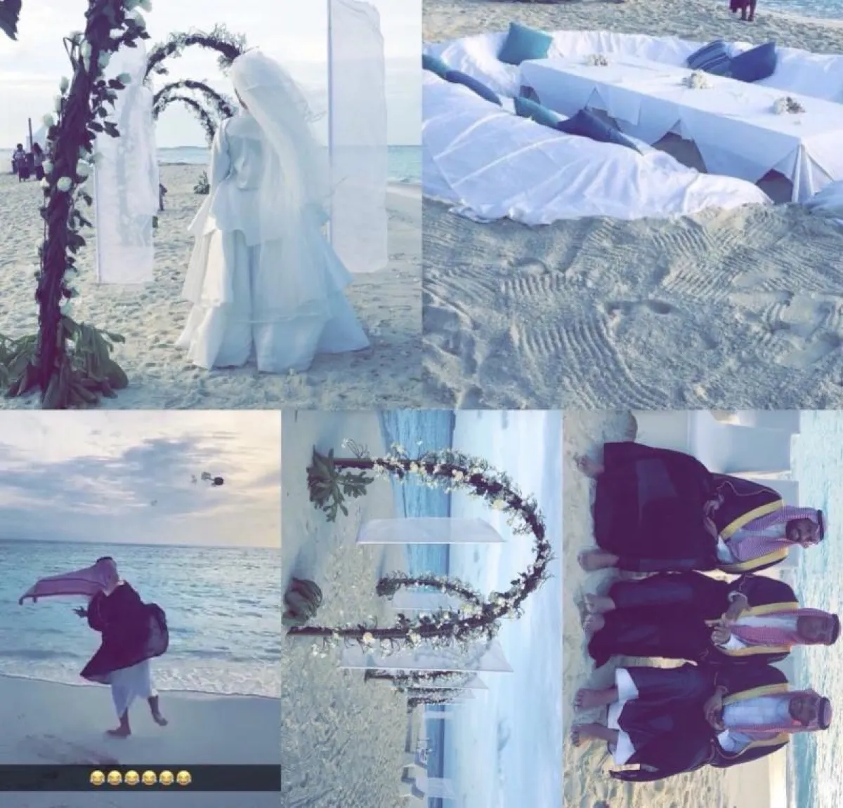وتعرّض كثير من الصور والفيديوهات التي توثق فقرات من الحفل، لانتقادات كثيرة وسخرية في بعض الأحيان، لاسيّما مقطع الفيديو الذي يظهر فيه العريس بزيّه السعودي، وهو يعوم بالقرب من شاطئ الجزيرة.