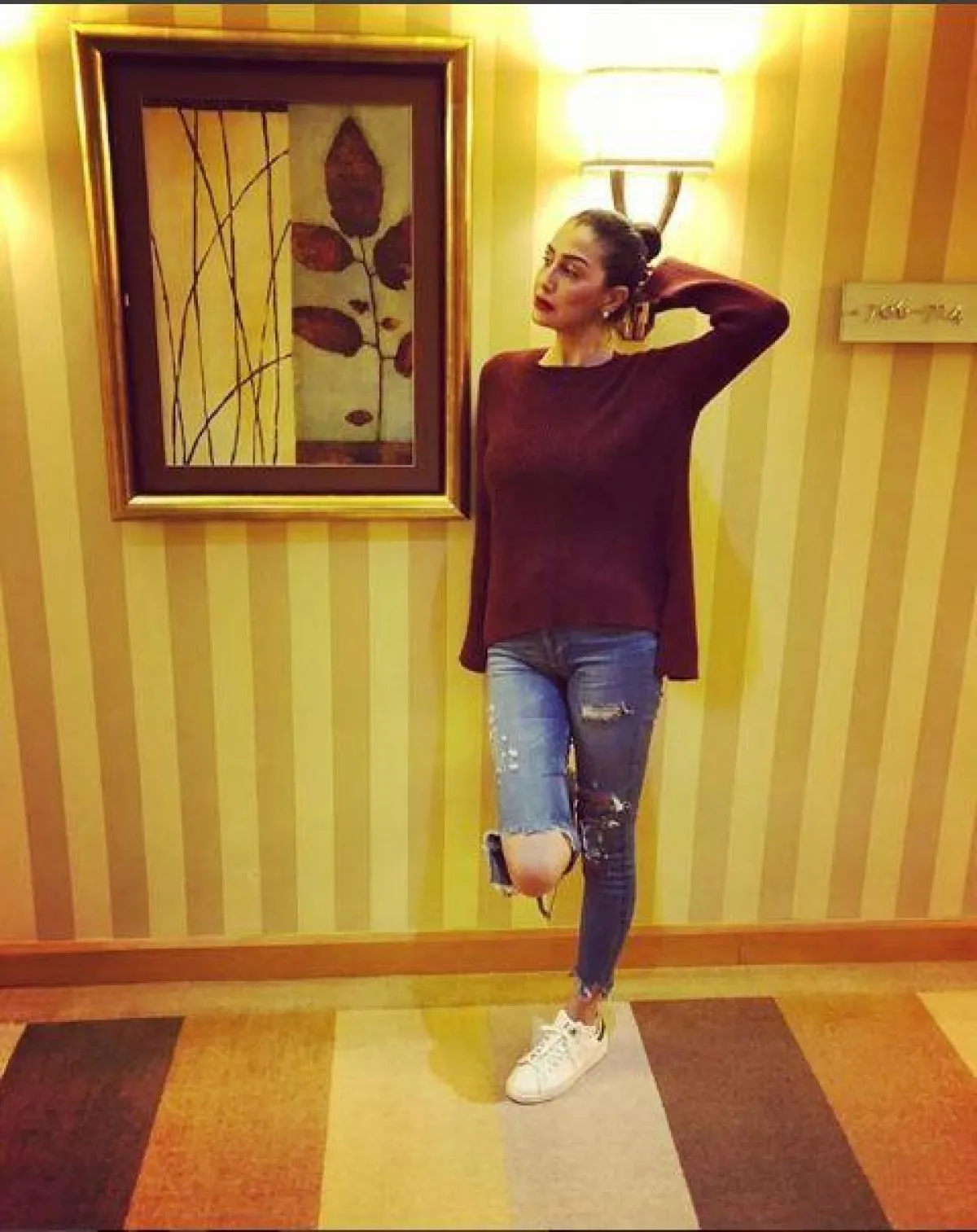 اختارت النجمة المصرية مي عمر الجينز مع الكوتشي الرياضي، وربطت الجاكيت العسكري على خصرها، واختارت التوب من دون أكمام، لإطلالة عملية ، تناسب أوقات الشوبينغ، أو رحلات السفر الطويلة.
