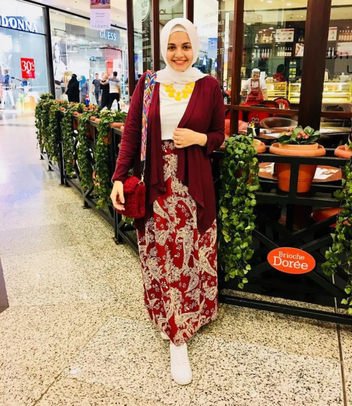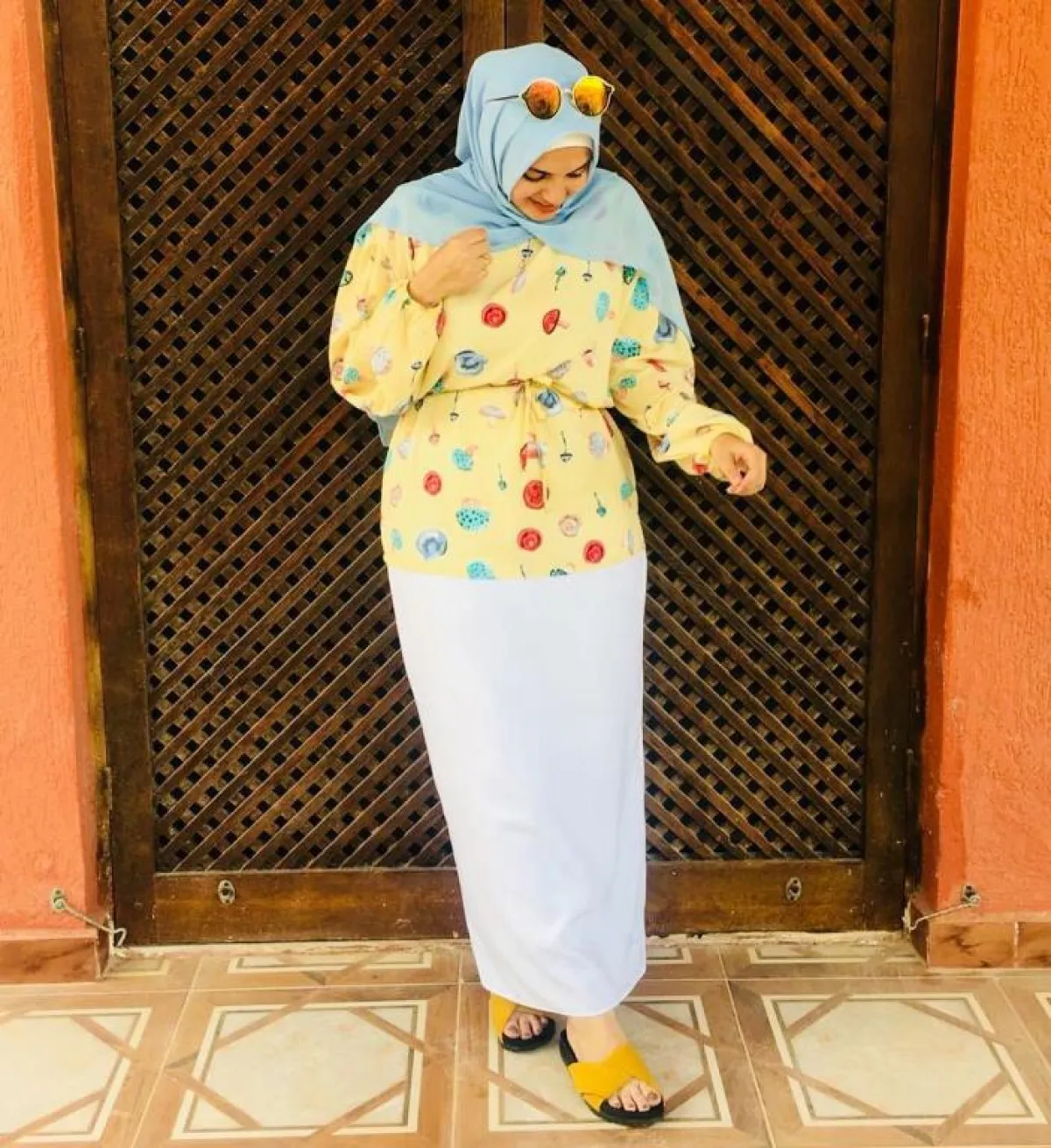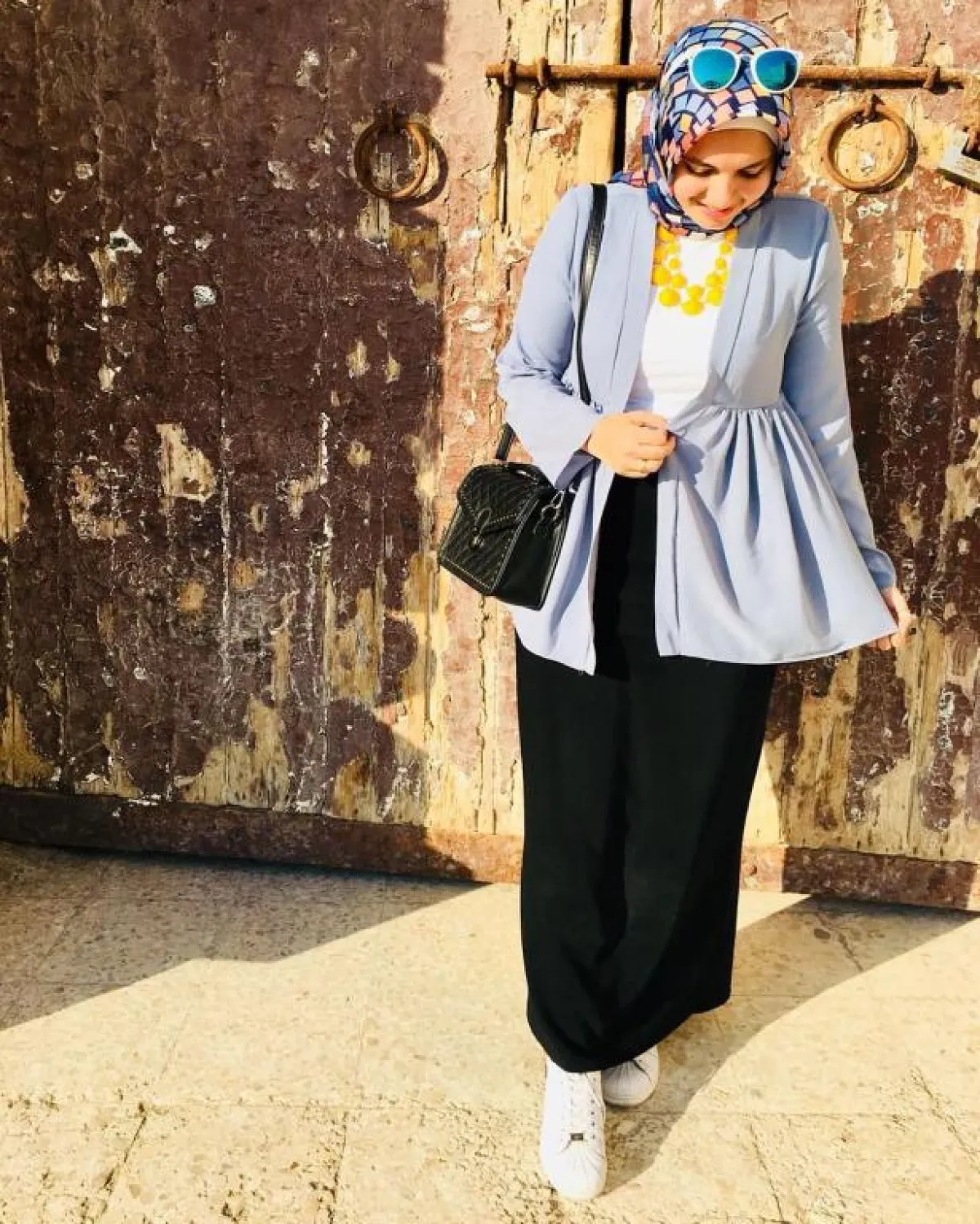 تبدع المدونة آية فوزي في تنسيق إطلالتها، فالحجاب لن يشكل عائقاً على الإطلاق بالنسبة إليها، وهذا ما يدفعها إلى توظيف صيحات الموضة وفقاً للحجاب.