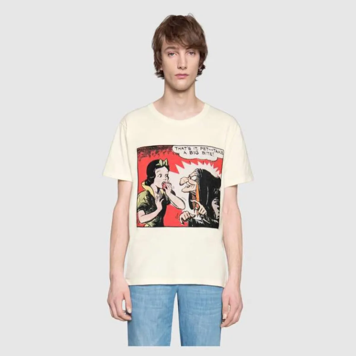 اختارت دار غوتشي Gucci هذا العام أن تكون مختلفة كليًا فيما يتعلق بقمصان الرجال، خاصًة الرسومات التي تحملها التيشرتات، مثل رسومات السنو وايت، أو بعض اللوحات التاريخية الشهيرة، والتي تبدو اختيار الرجل الذي يتمتع بروح جريئة ومُترفة.