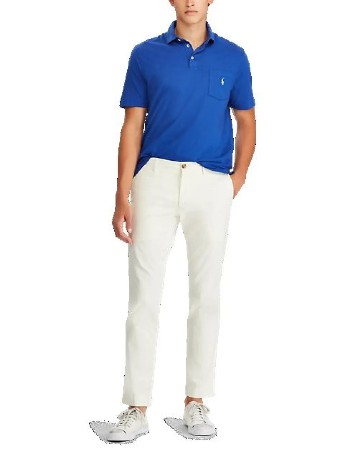 إذا كنت ممن يميلون أكثر للبساطة، حتمًا ستعجبك تصاميم POLO RALPH LAUREN بولو رالف لورين بولو مثل هذا التيشرت البسيط الذي لا يحمل سوى علامة الدار ،وقد جاء بألوان عصرية مثل الأزرق، وياقة كلاسيكية. يمكن تنسيقه مع الجينز الممزق، والسنيكرز الأبيض.